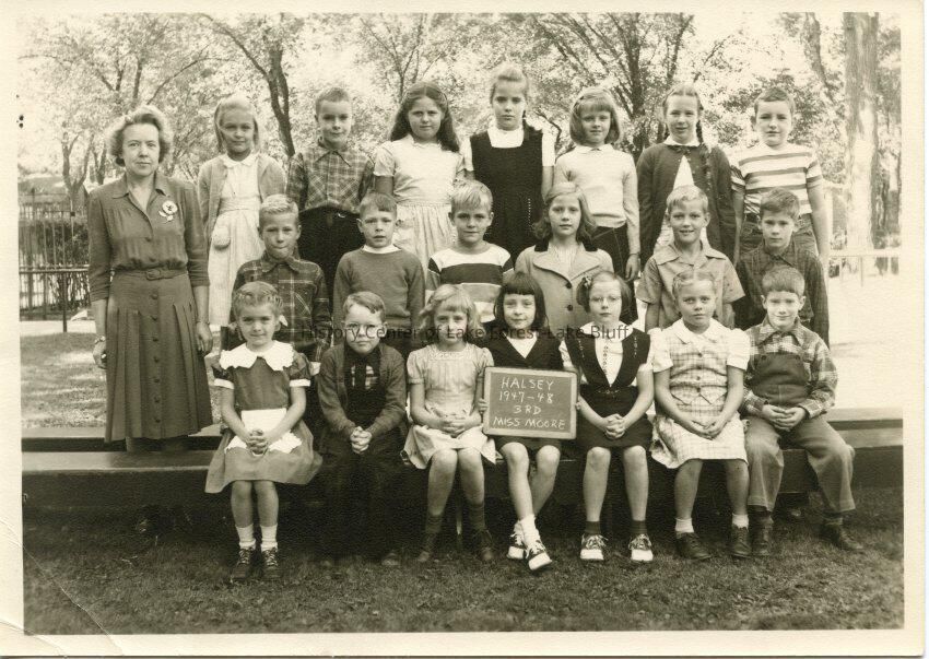 Halsey School Third Grade 1947-1948. Teacher is Miss Moore. Students unidentified. David O'Neill is probably pictured, possibly in the back row, first from the right.