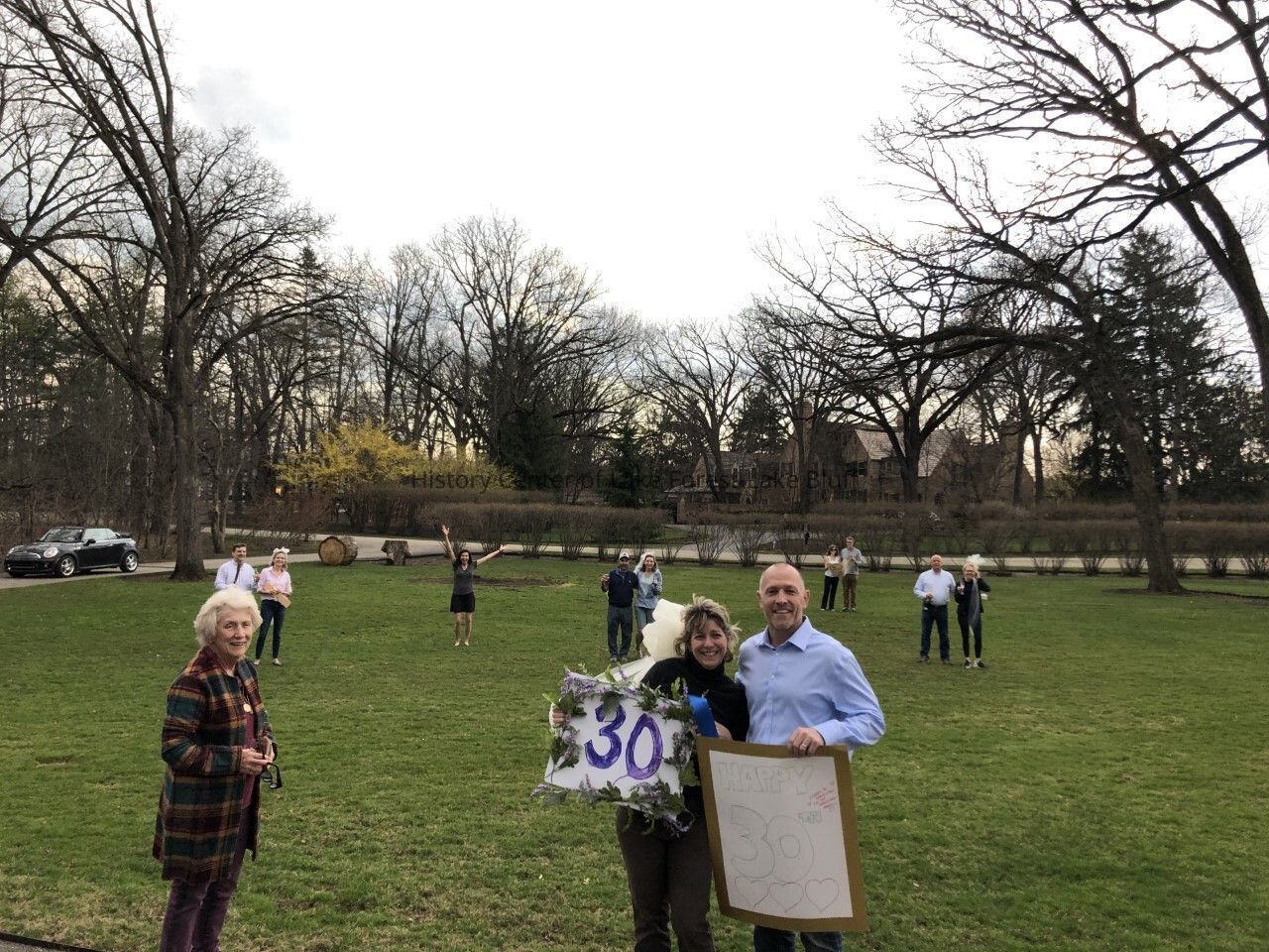 Megan Morris: Last night, in honor of bob and Megan’s 30th wedding anniversary, local friends drove over for a safe distancing shout out! Complete with veils and champagne!