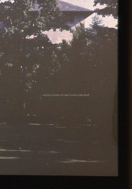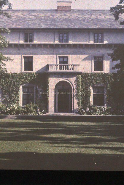 Havenwood main house two trees in foreground Havenwood II garden 1075 East Ringwood Road Lake Forest owners: Edward Larned Ryerson Sr. and Mary Pringle Mitchell Ryerson; Franciscan Order of Monks Howard Van Doren Shaw landscape architects: Jens Jensen; Rose Standish Nichols 1912-1914 N - razed 1979 Gatehouse extant at 955 Ringwood