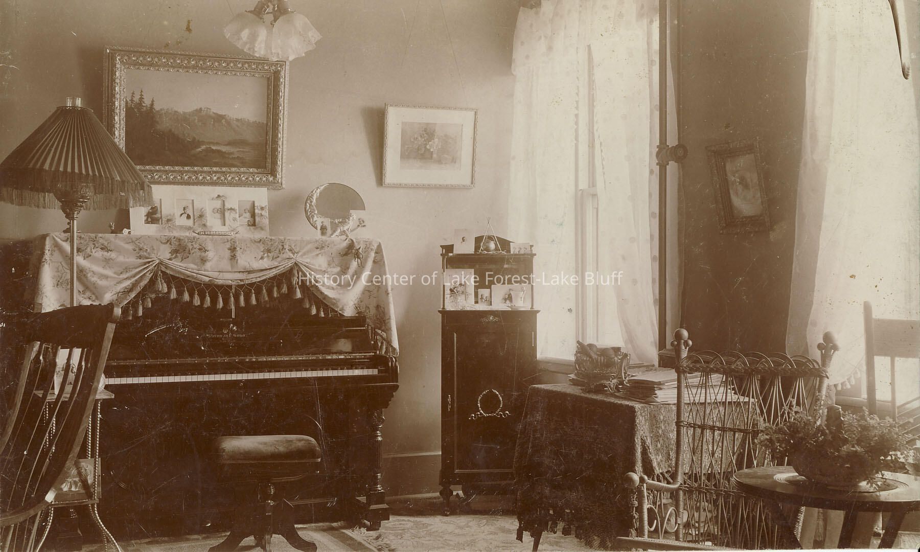 Sepia toned 5.25" x 7.25" interior view of the head master's rooms at Remsen Cottage at Lake Forest Academy. may have been on Poplar Avenue, Lake Forest