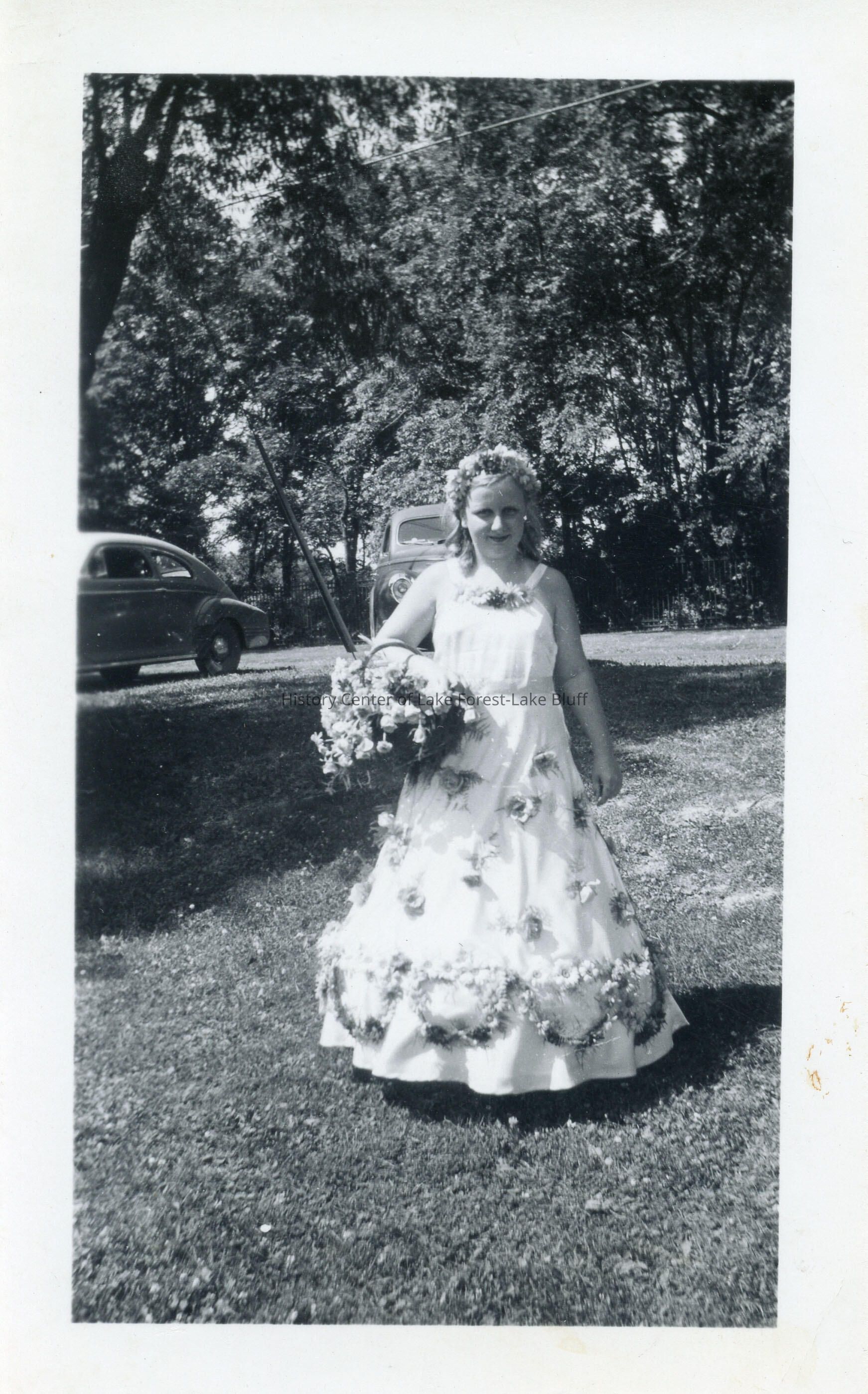 Helen Jahnke in 1945 dressed to ride Lake Forest Day float entered by her father, Herman R. Jahnke, florist. Lake Forest Day: 100 Years of Celebration, p. 54.