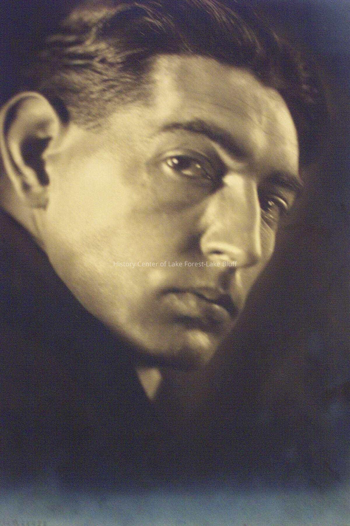 Portrait of Helmar Lerski of Milwaukee. Dark haired male, looking over shoulder. Serious expression.