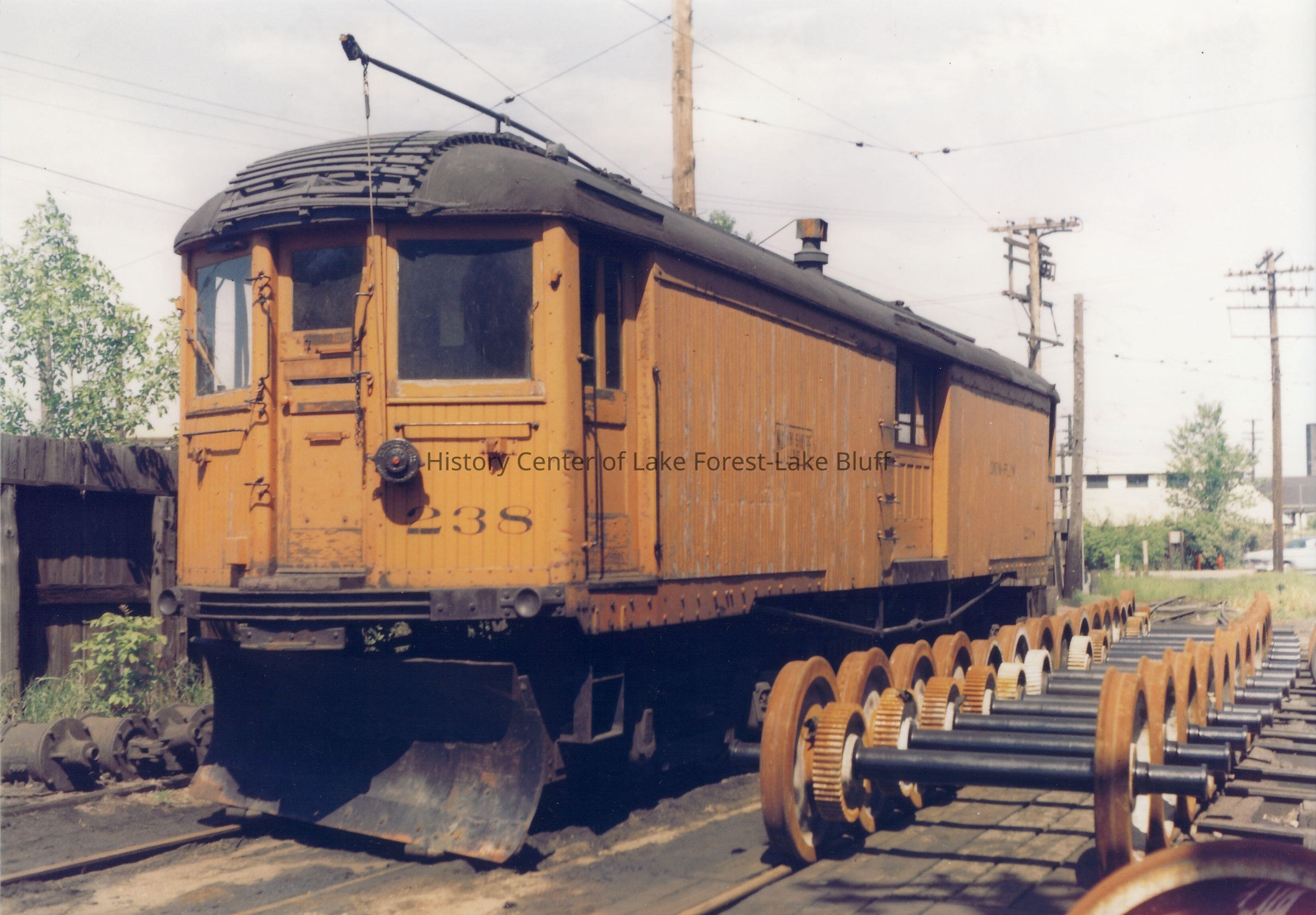 Train car 238 outside of Highwood Station, 1959 or 1961 North Shore Line