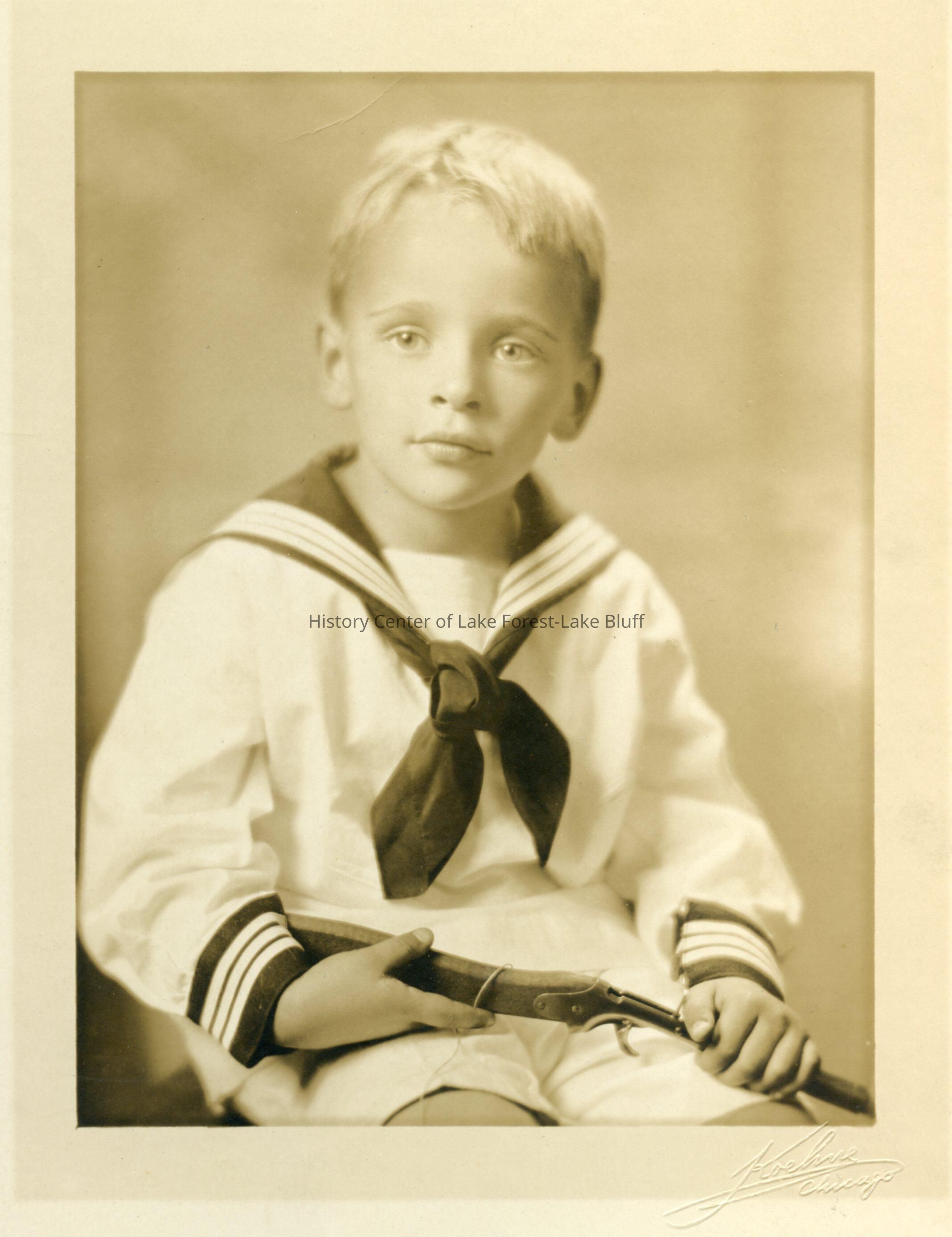 Hobart Chatfield-Taylor, as a youth holding a toy rifle portrait is matted