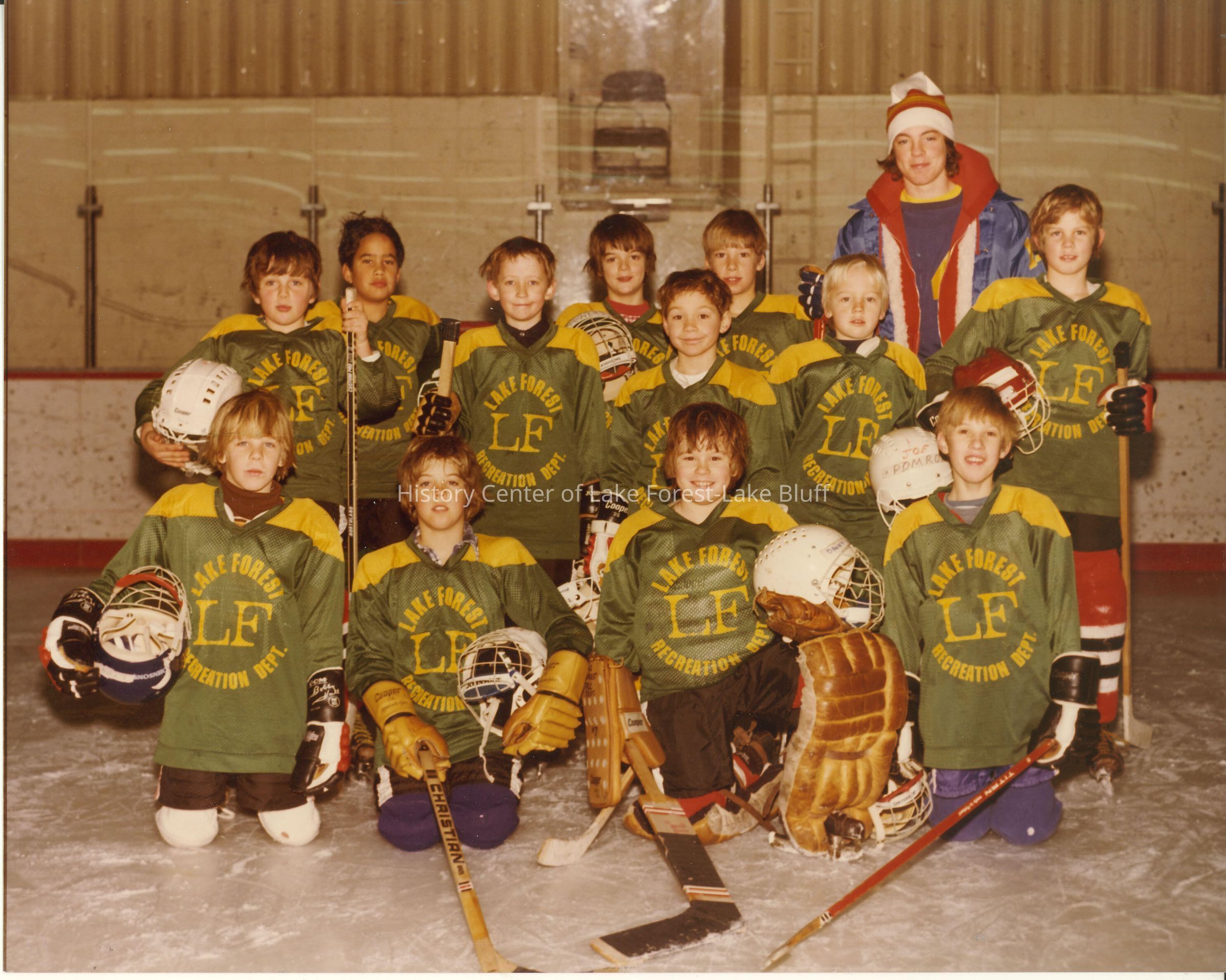 Boys hockey team, 12 players and one coach; Players' age is about 8yrs to 12yrs