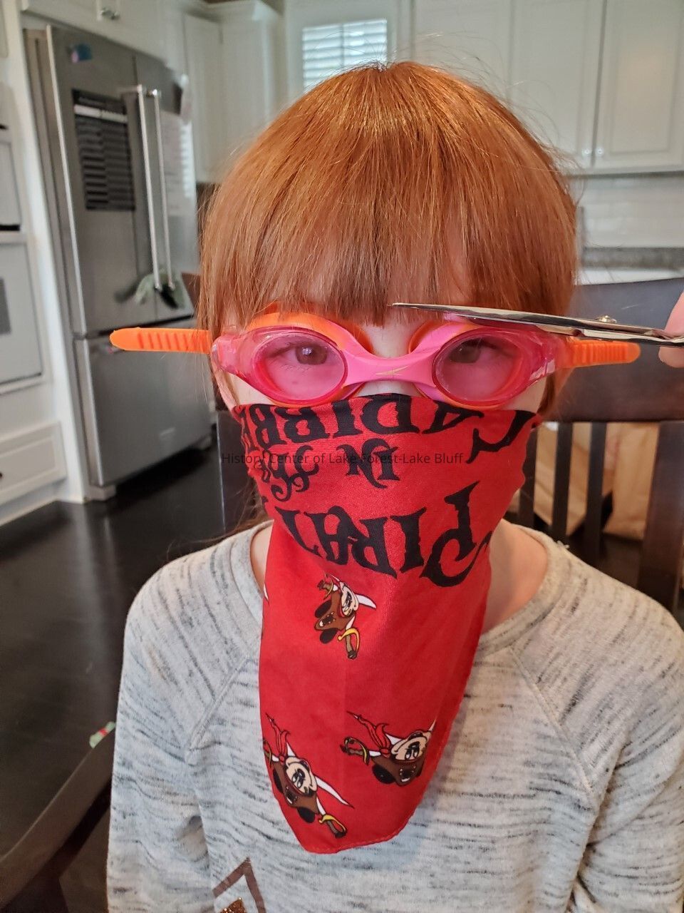 Wendy Giangiorgi: "Giving my daughters bang trims at home. They are normally complimentary at their hair cut place. My oldest daughter clearly didn't want to get tiny hairs anywhere!"Context
