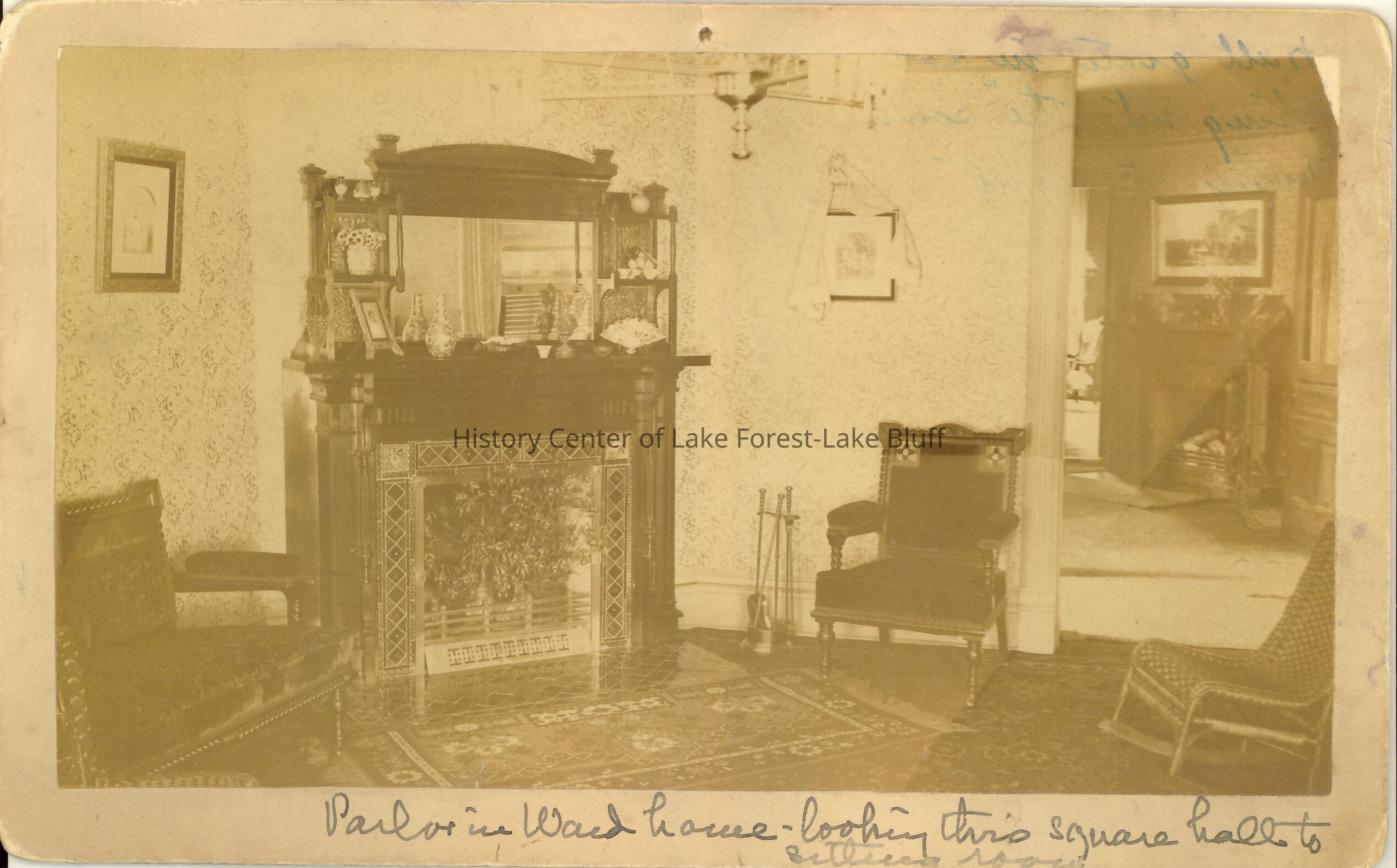 Home of Samuel Dexter Ward, II one of the first residents of Lake Forest 1863-1892 donated by Anna W. Hale Parlor in Ward House looking through square hall to sitting room.