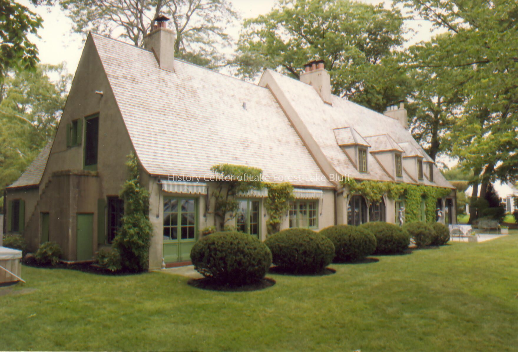 Exterior of Walter Frazier home built for Howard and Lucy Linn in 1925. Located at 555 Shore Acres Road in Lake Bluff, Illinois.