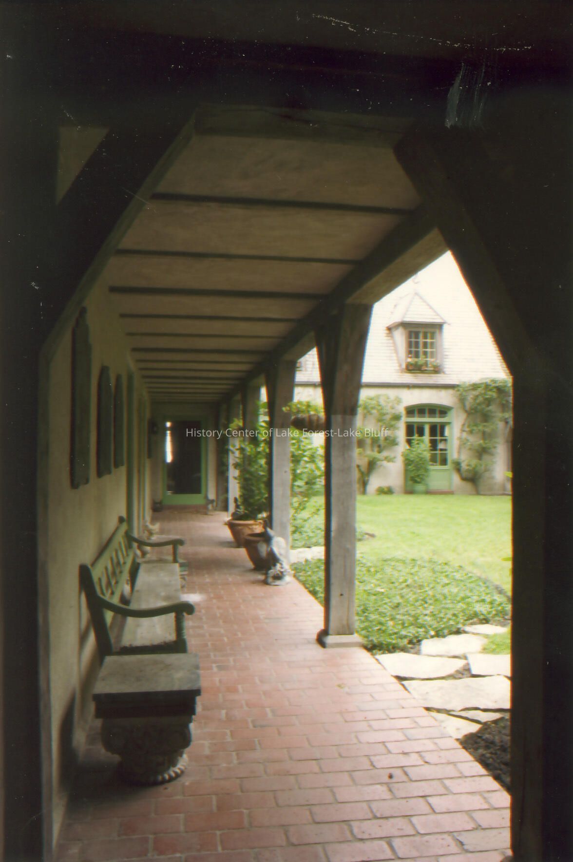 Exterior view from porch of Walter Frazier home built for Howard and Lucy Linn in 1925. Located at 555 Shore Acres Road in Lake Bluff, Illinois.