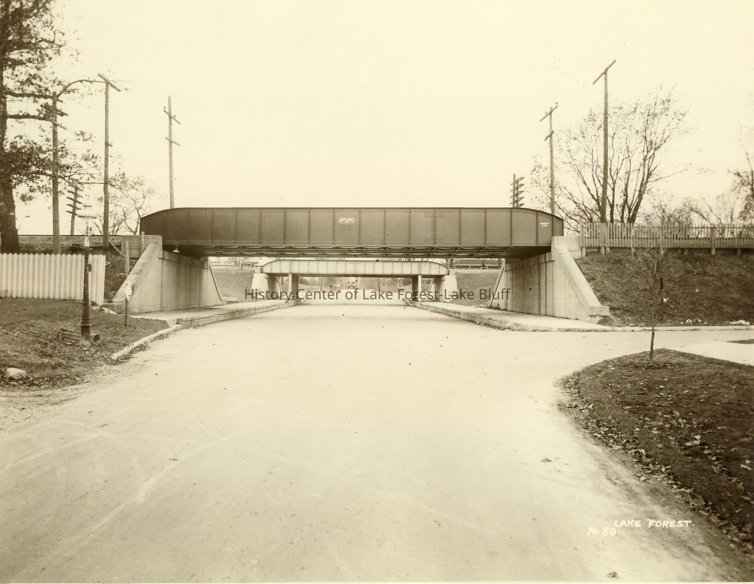 Shore Line route - North Shore Line Route - Lake Forest Illinois and McKinley looking west on Illinois Chicago North Shore & Milwaukee Railroad