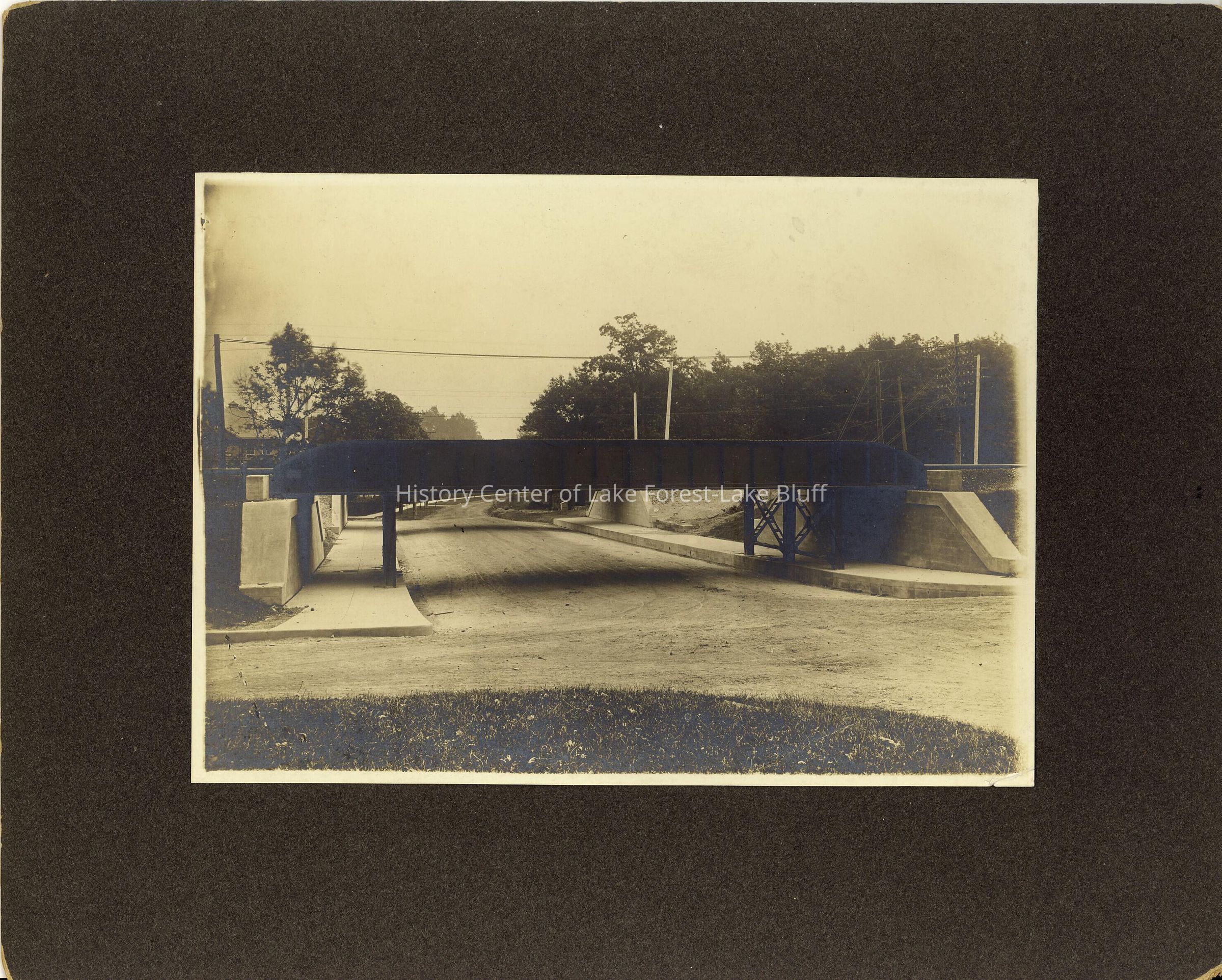 Viaduct over Illinois Road, between McKinley and Western, with Chicago and North Western railroad tracks going over. Appears to be taken shortly after the viaduct was widened. See 2005.66.23 for comparison to what it looked like before construction - see 2005.66.26 for construction.