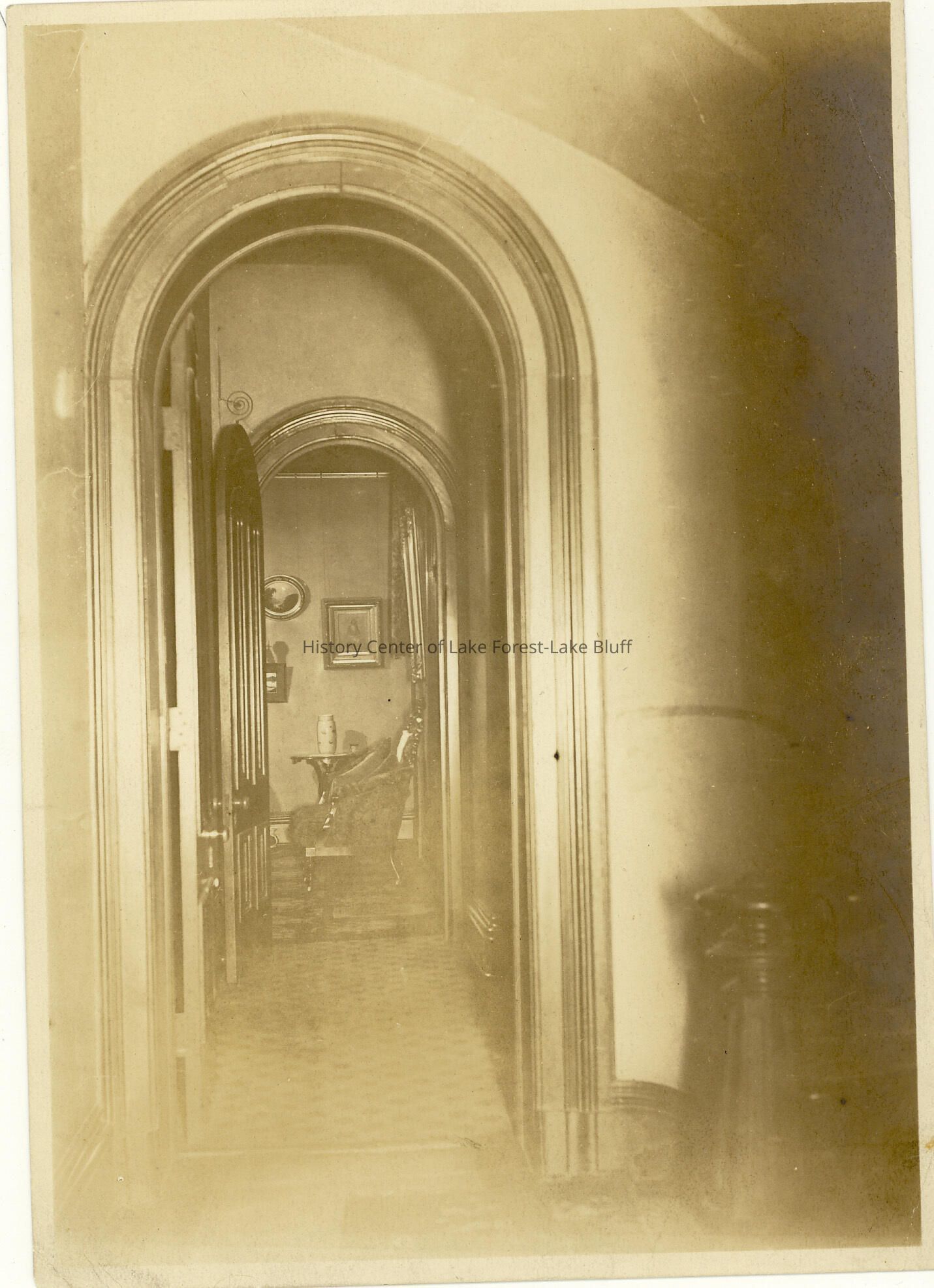 A view through two arched doorways. Harvey Family home in Lake Bluff ?