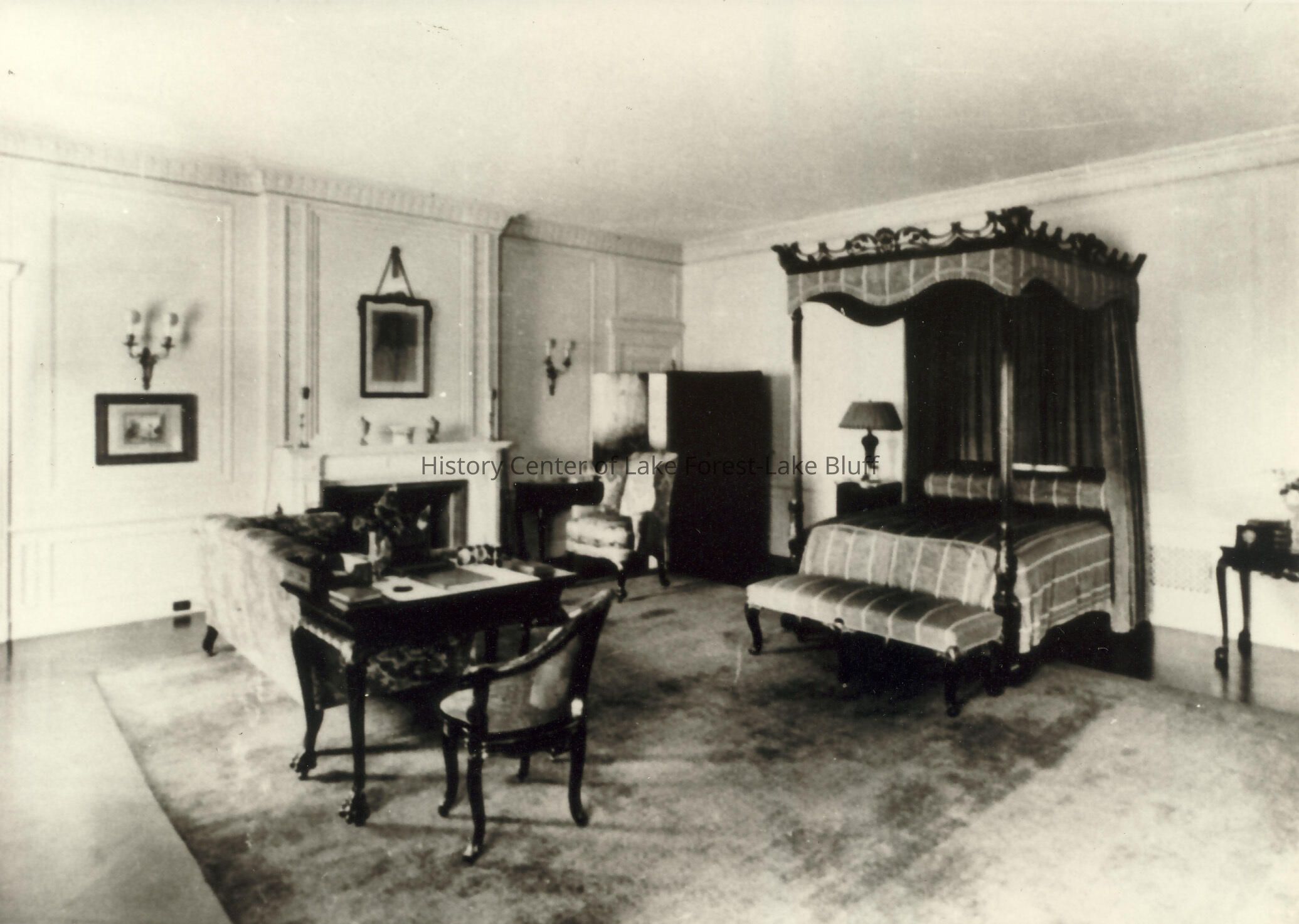 J. Ogden Armour Estate - "Mellody Farms" - Interior Bedroom bed to the right and desk and couch to the left