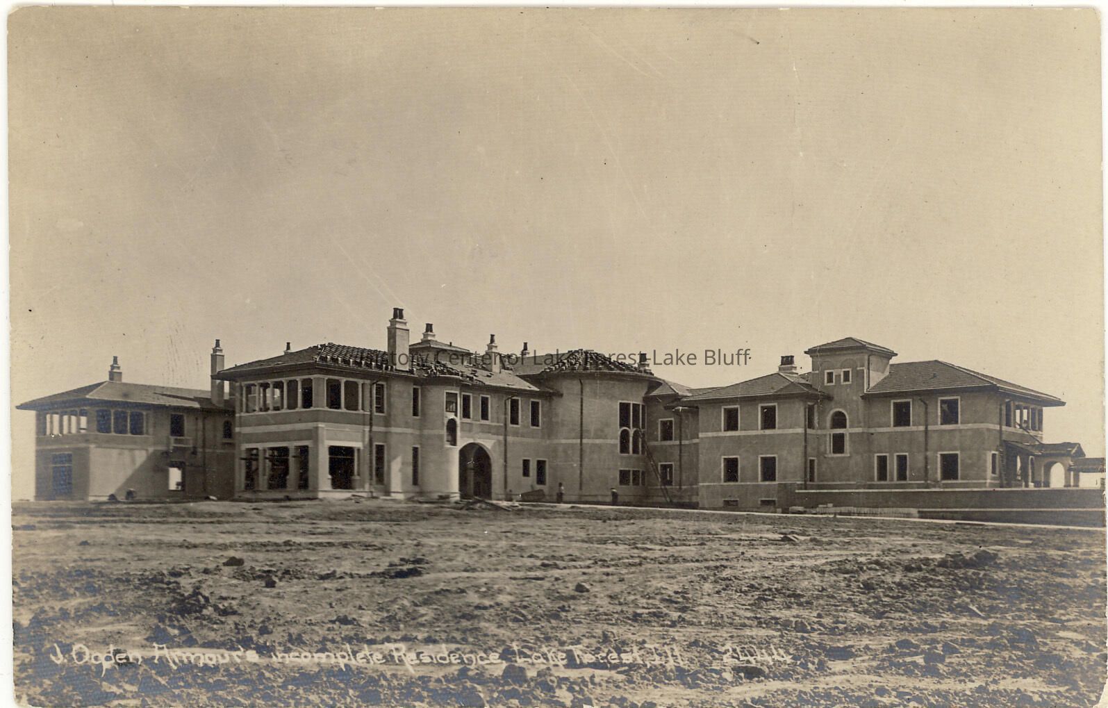 Postcard of J. Ogden Armour residence, Mellody Farms, during the building stage.