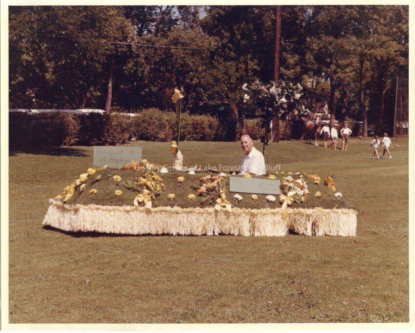 Herman R. Jahnke Lake Forest Day parade float. "Bouquets to City Employees." Color photograph.