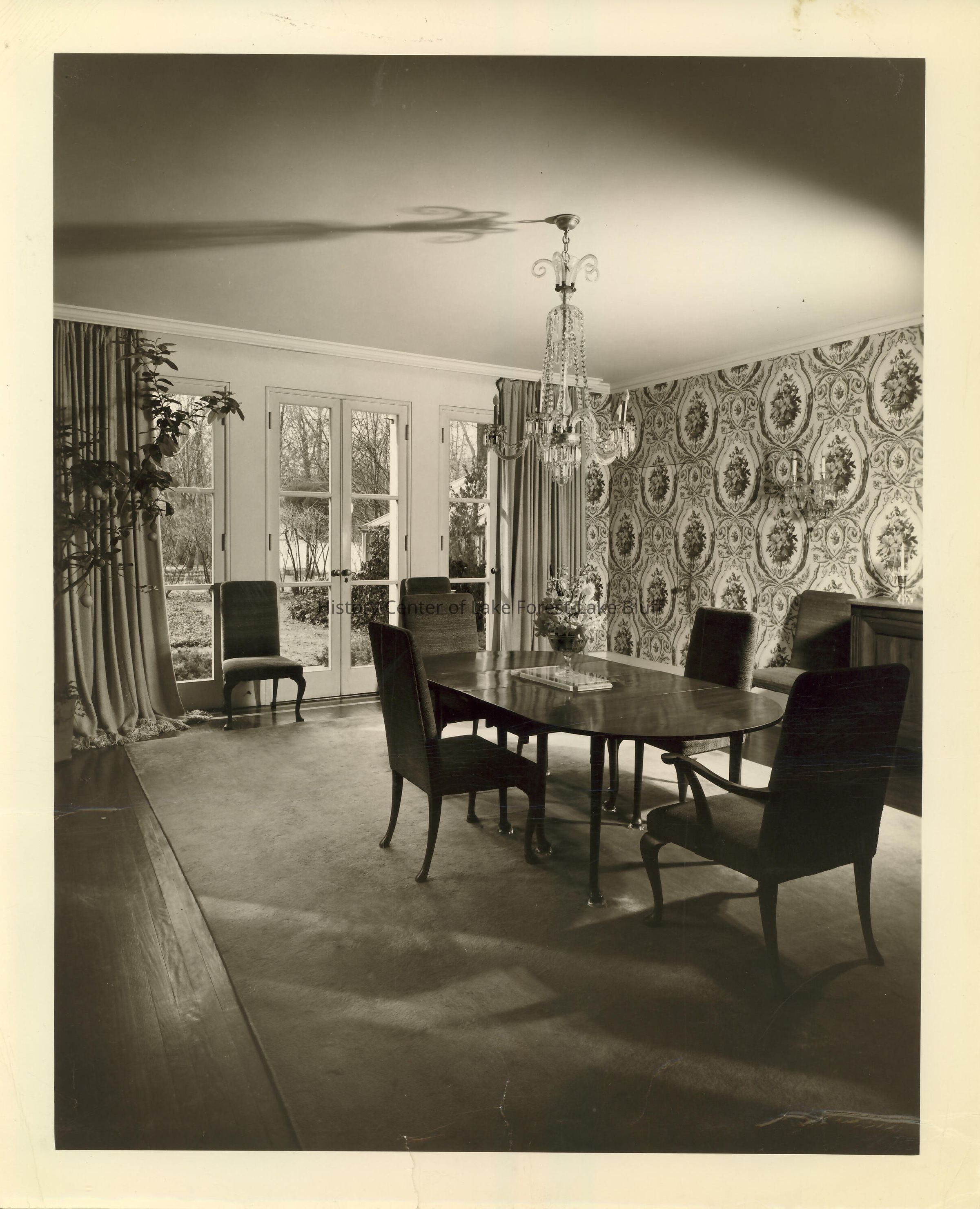 Interior of Walter Frazier home built for James and Betsy Getz in 1939. Located at 850 Riverwoods Road in Mettawa, Illinois. (Black and White Image)