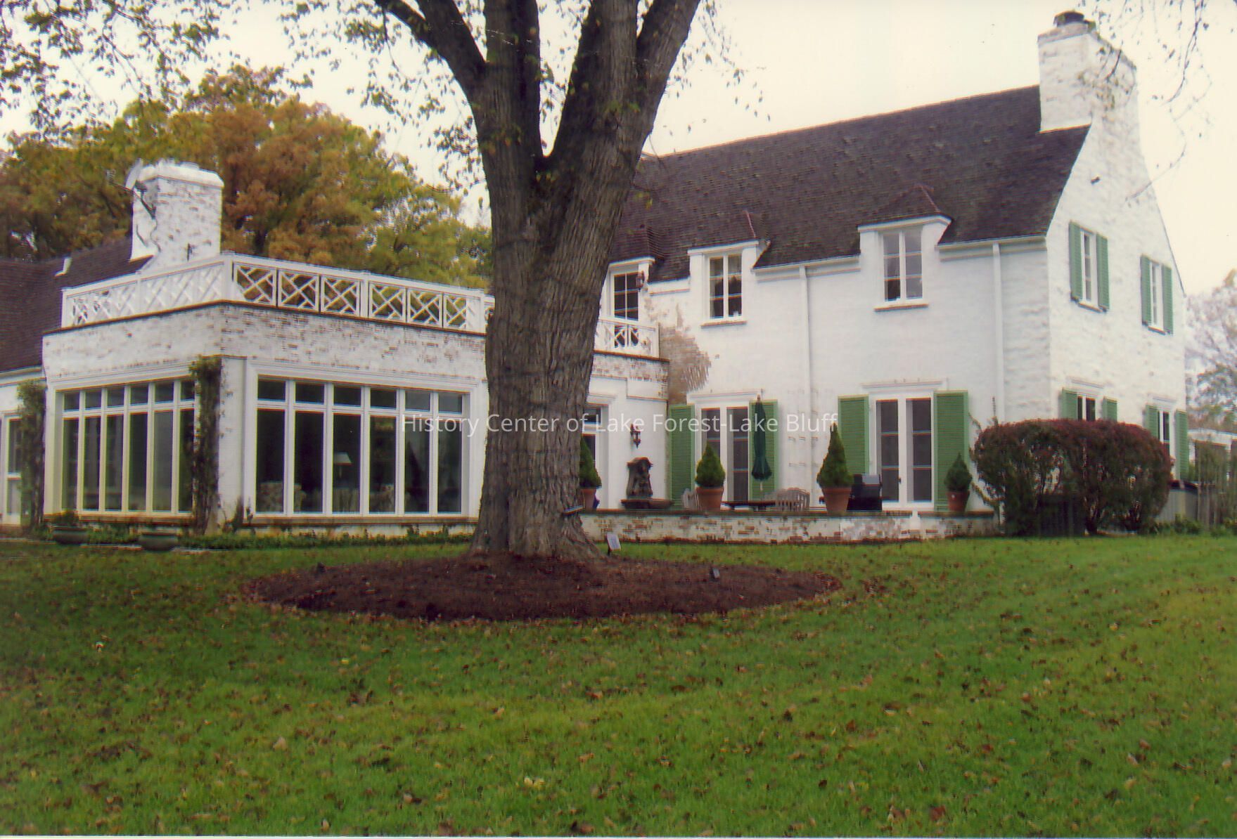 Exterior of Walter Frazier home built for James and Betsy Getz in 1939. Located at 850 Riverwoods Road in Mettawa, Illinois.