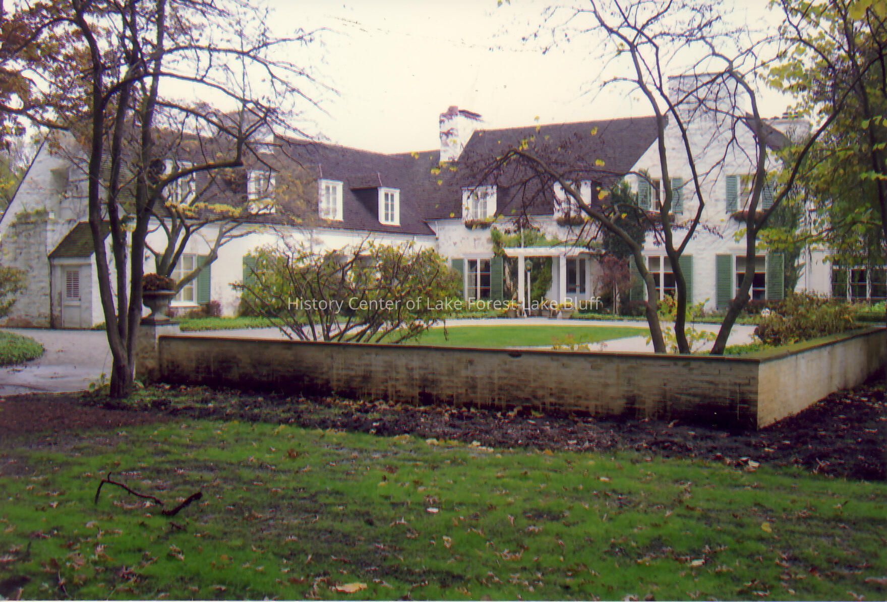 Exterior of Walter Frazier home built for James and Betsy Getz in 1939. Located at 850 Riverwoods Road in Mettawa, Illinois.