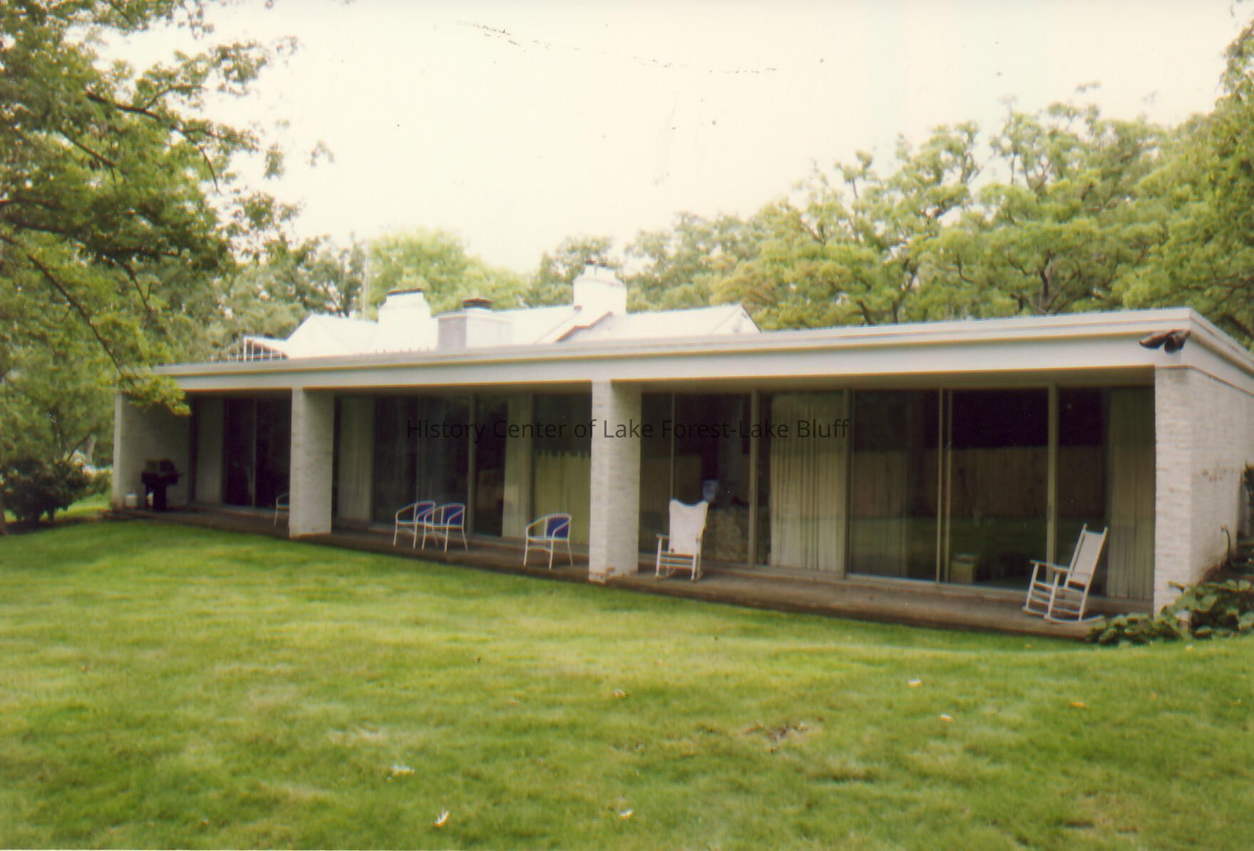 Rear exterior of Walter Frazier home built for James Beach Clow in 1940. Located at 1550 N. Greenbay Road in Lake Forest, Illinois.