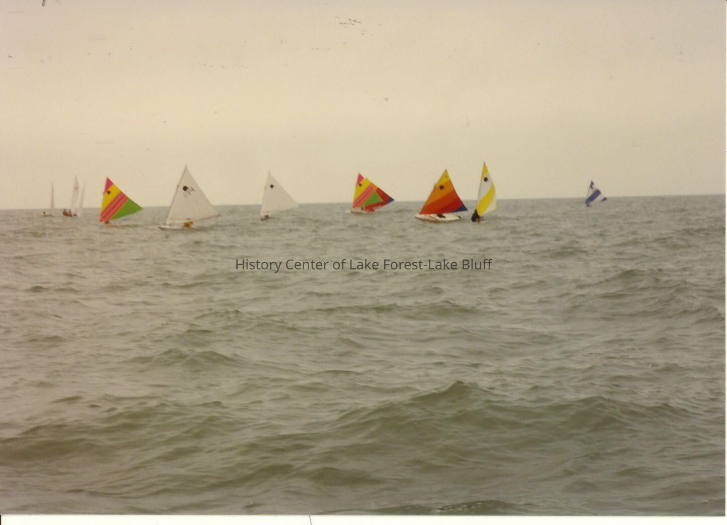 Sailboats racing in the distance in Lake Michigan off Forest Park beach.