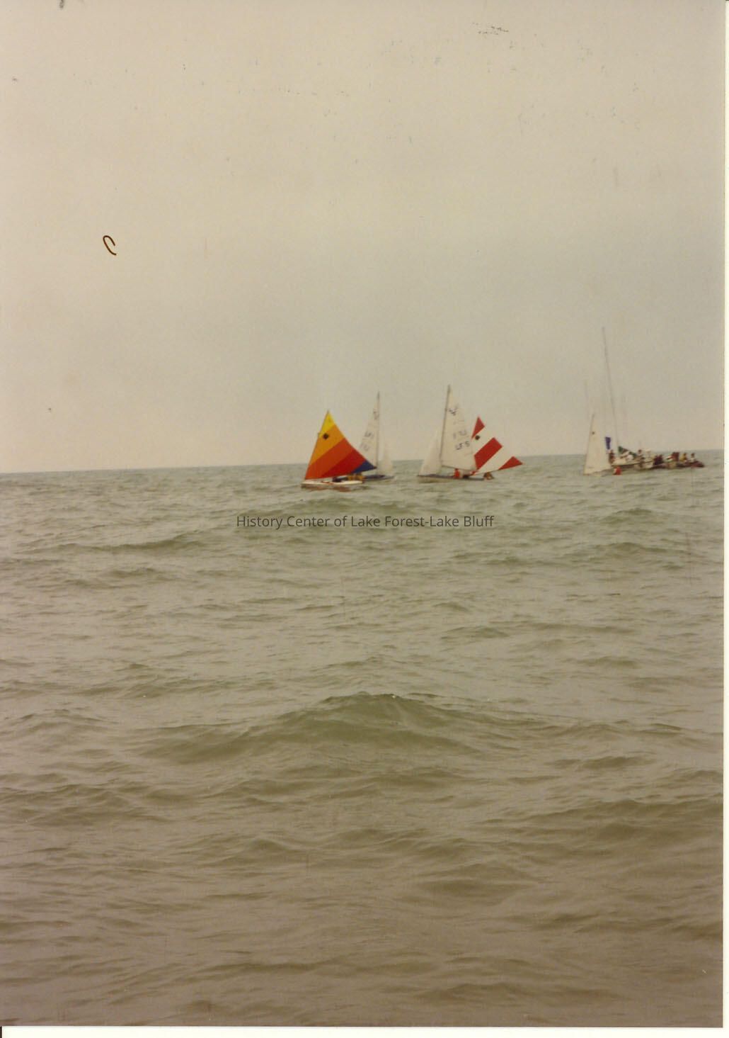 Sailboats racing on Lake Michigan off Forest Park beach.