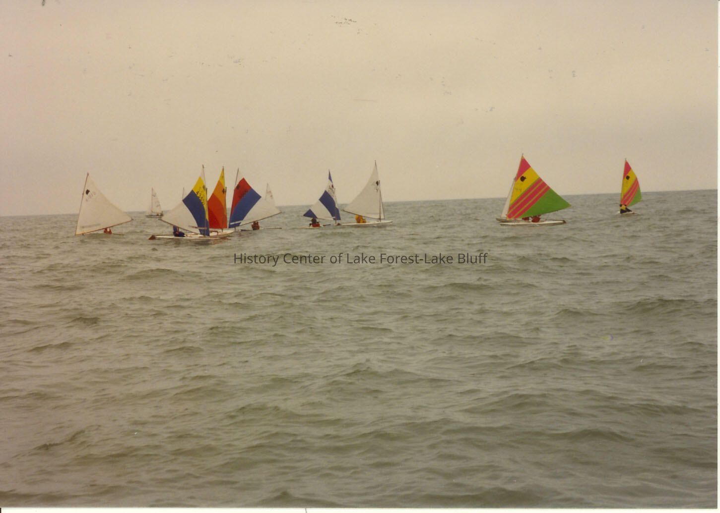 Sailboats racing on Lake Michigan off Forest Park beach.