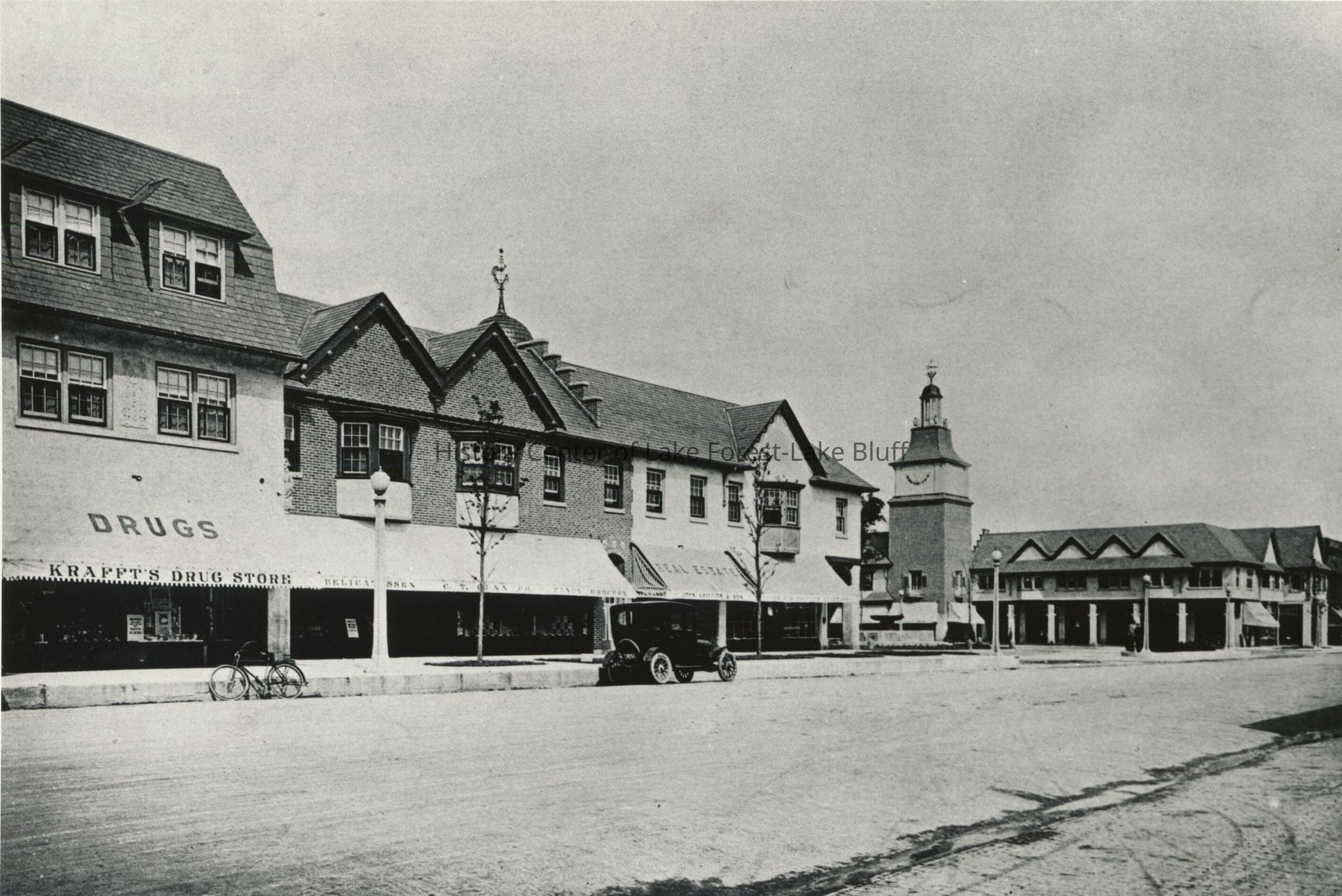 Black and white photograph of Krafft's Drug Store and Market Square, 666 and 700 North Western Avenue. From the Western Architect, October 1917,