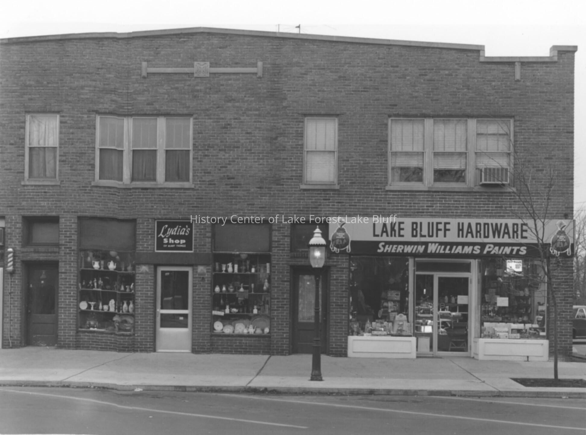 Lake Bluff Hardware (37 Scranton Avenue) and Lydia's Shop (41 Scranton Avenue). Verso: November 21, 1965
