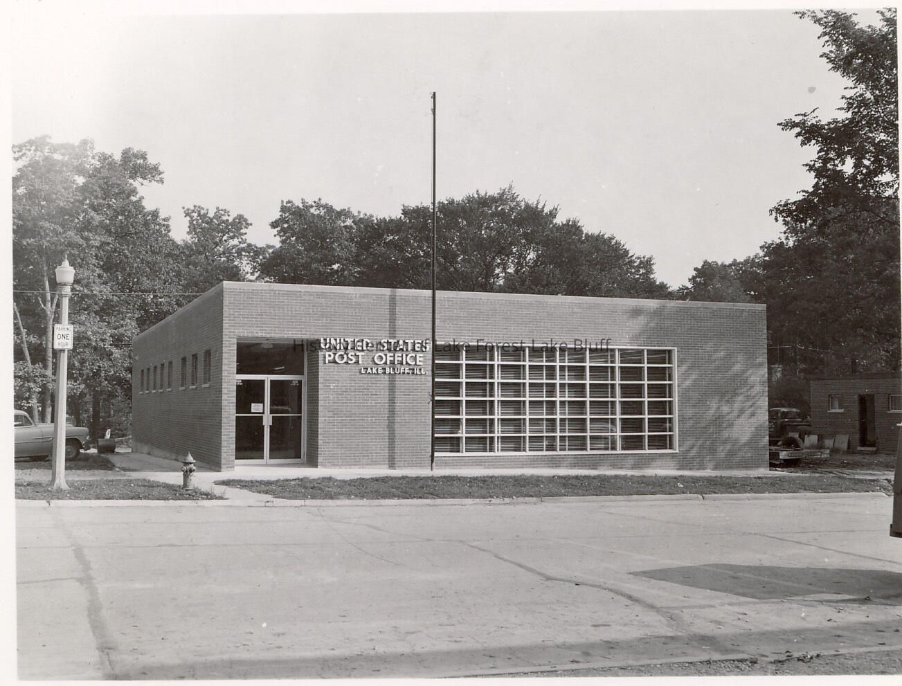 Lake Bluff Post Office built 1958 Official dedication Saturday, September 27, 1958 Postmaster Kenneth Masonick. New building open for business Monday September 29, 1958. Picture story in Waukegan News-Sun Saturday, September 27, 1958