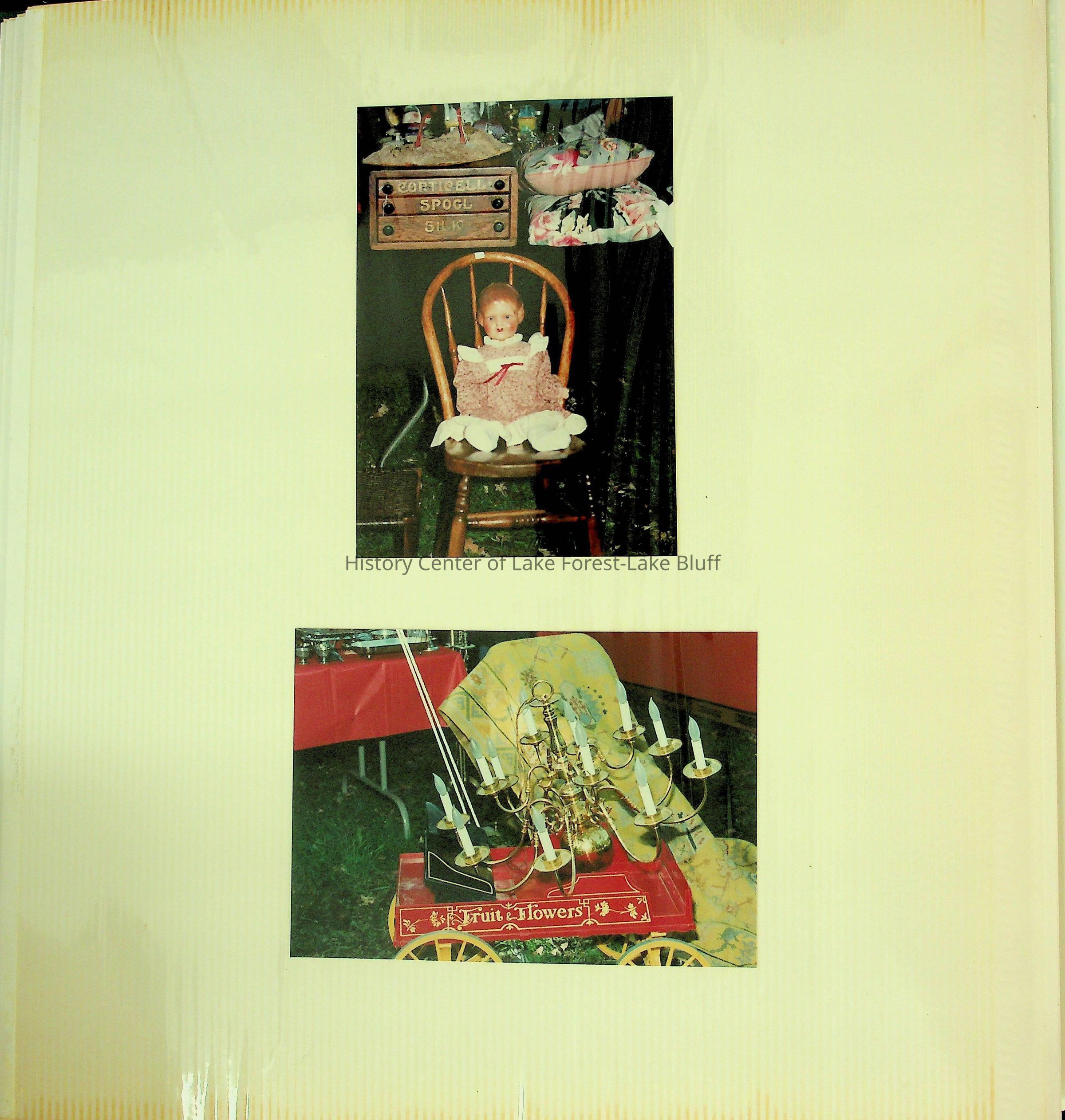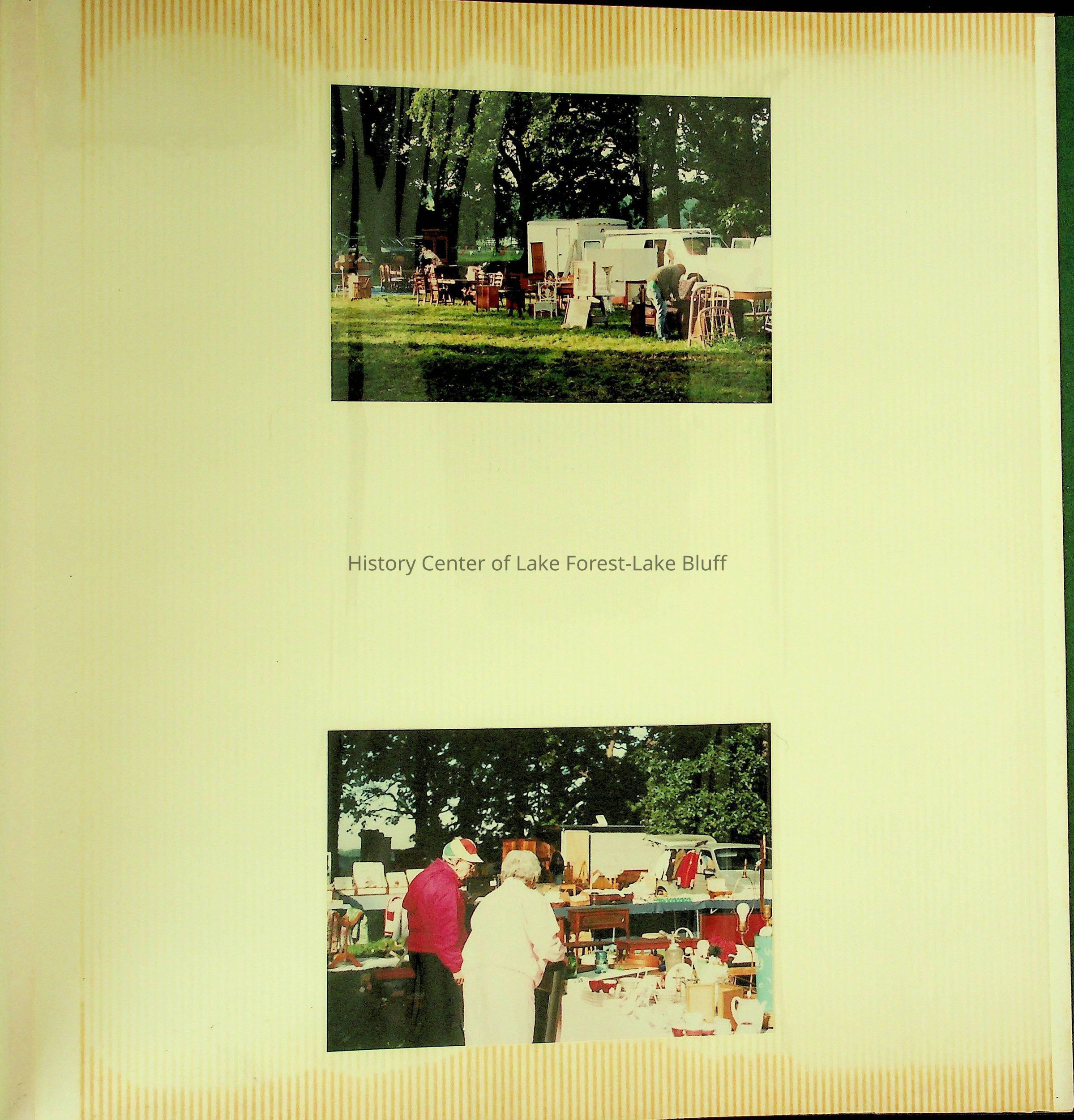No date given. Green bound photo album with embossed gold border. Photo's depict the Lake Forest Antique show as given by the Auxiliary of the Infant Welfare Society. As photos are not dated, it is difficult to tell whether or not this Antique Sale is the same one as in 2021.7.8.