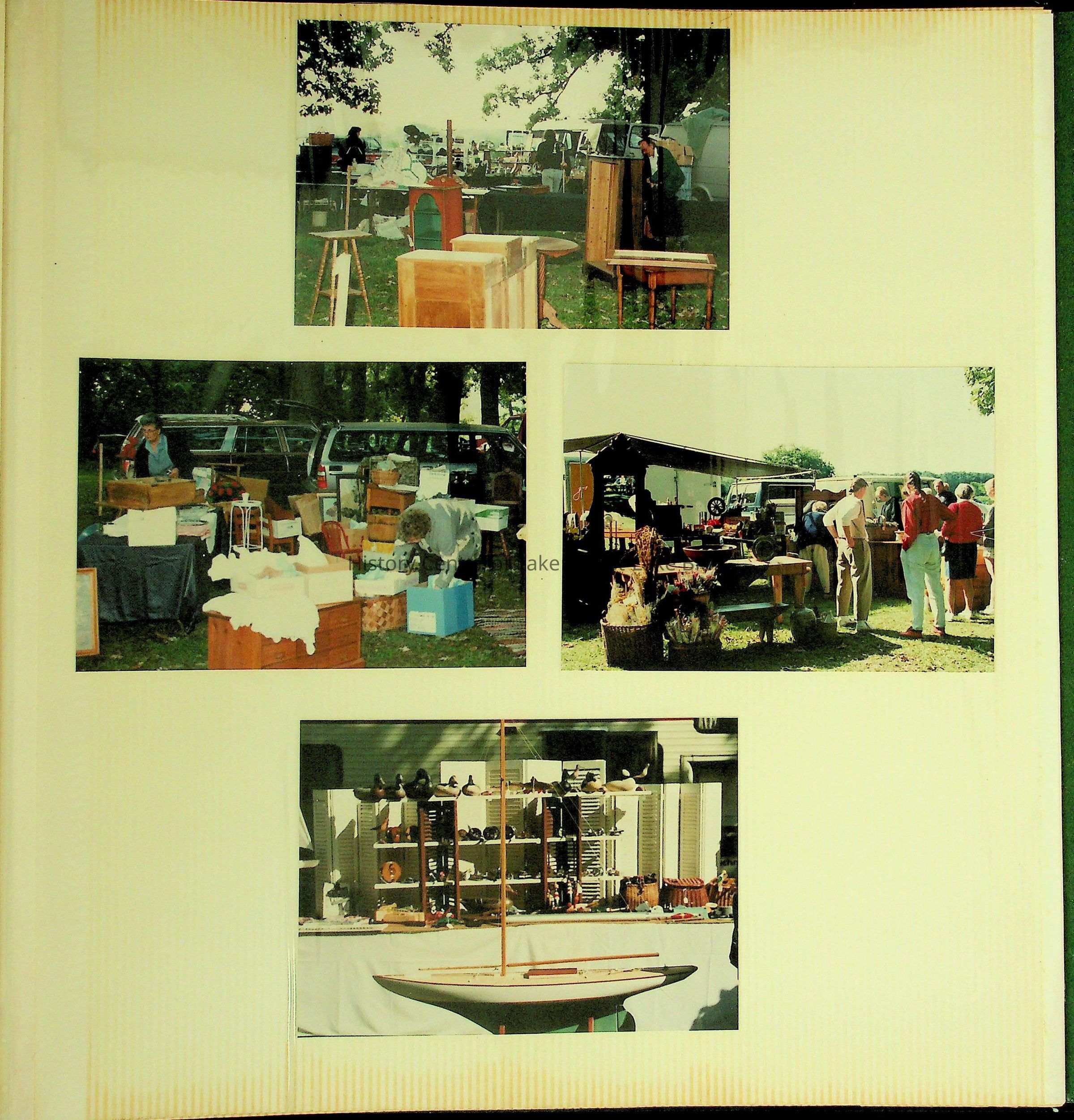 Photos depict variou individual antiques that were on offer at the time, different booths or stores, and visitors.