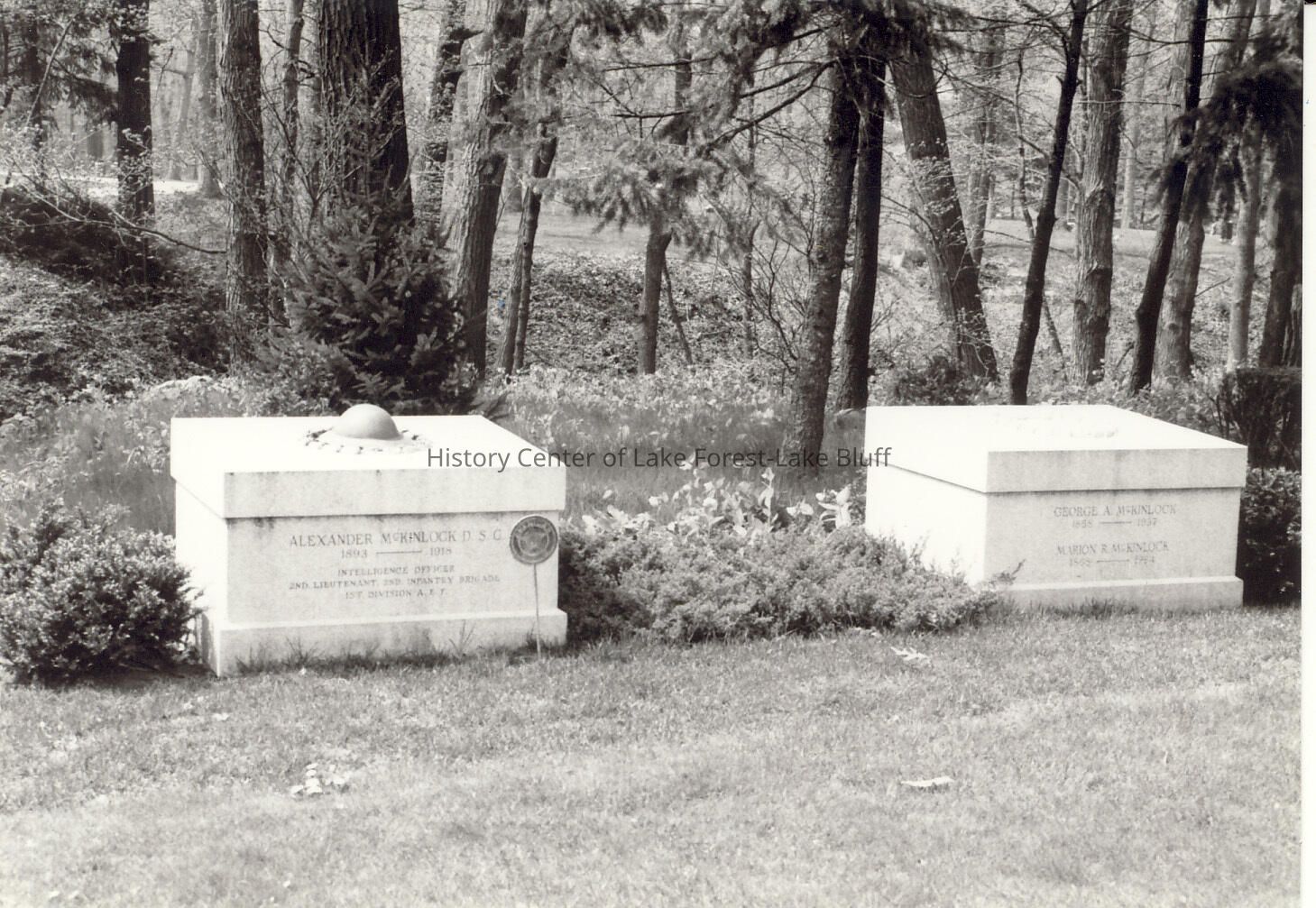 Gravestone in Lake Forest Cemetery. negatives included Alexander McKinlock, George A. McKinlock and Marion R. McKinlock see also 2004.62.53-.56