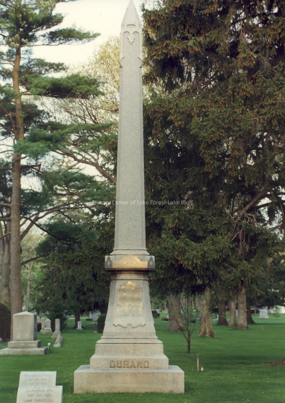 Gravestone in Lake Forest Cemetery. negatives included Durand family