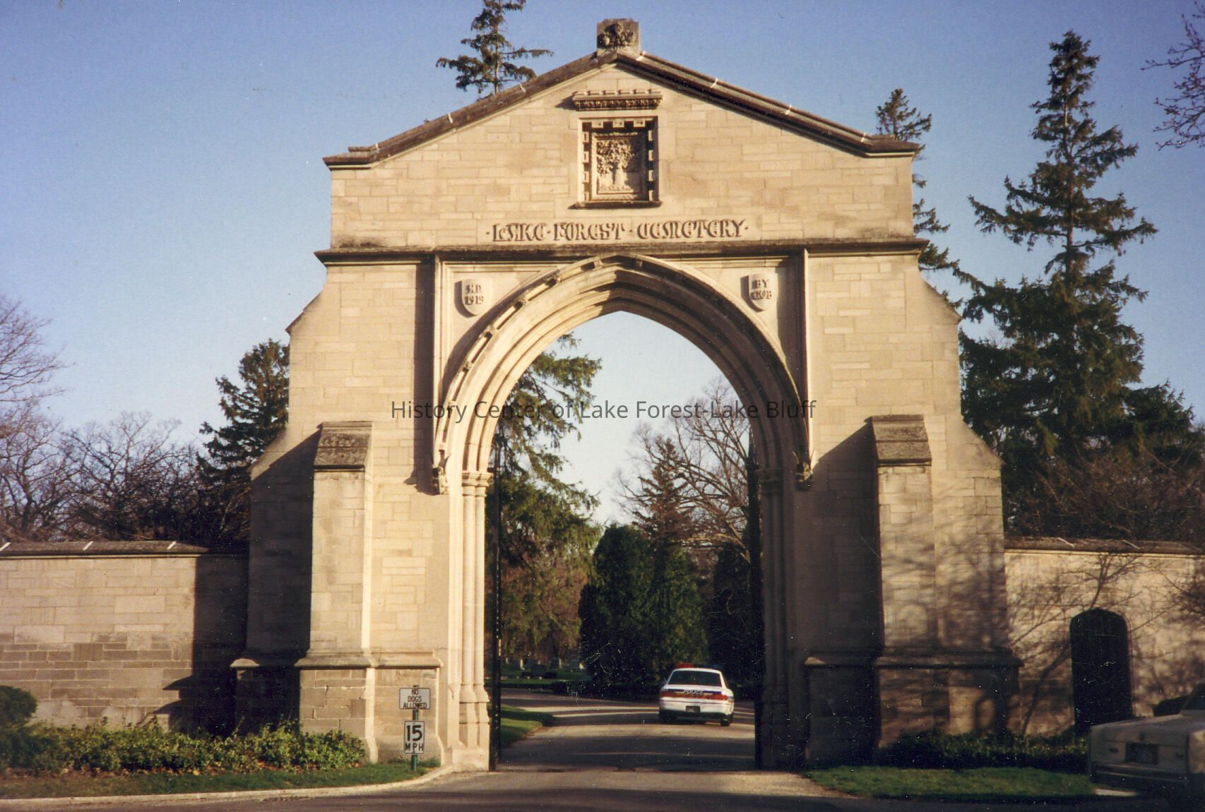 Lake Forest Cemetery entrance gates, given by Finley Barrell, in memory of his son, John