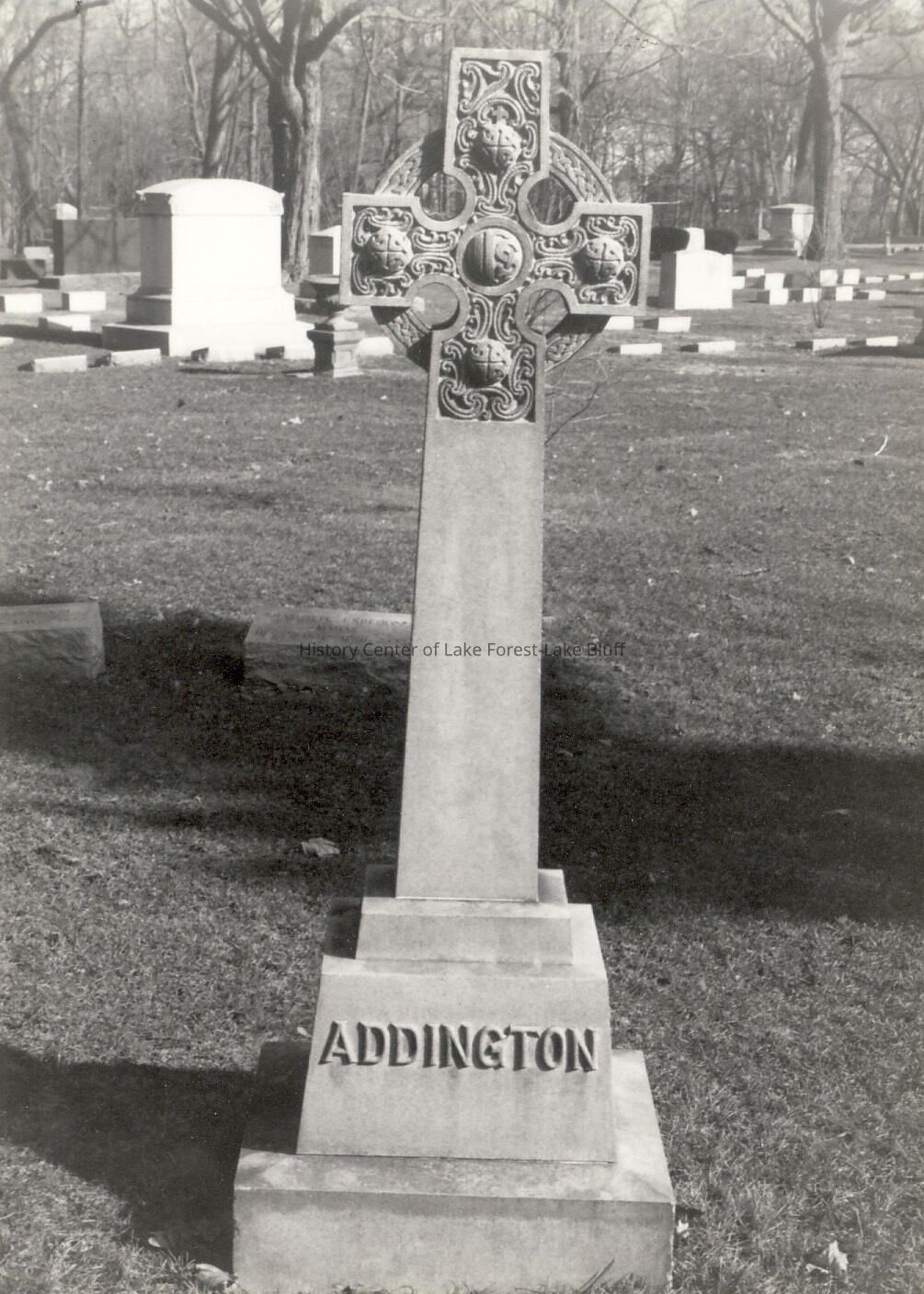 Gravestone in Lake Forest Cemetery. negatives included Addington Family, Celtic cross