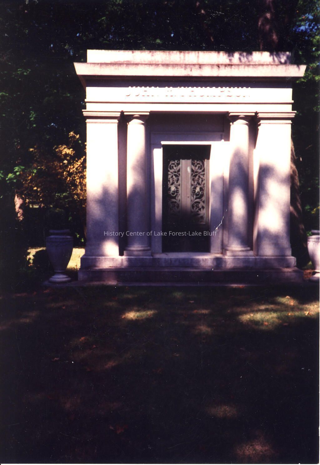 Gravestone in Lake Forest Cemetery. negatives included John R. Thompson Mausoleum
