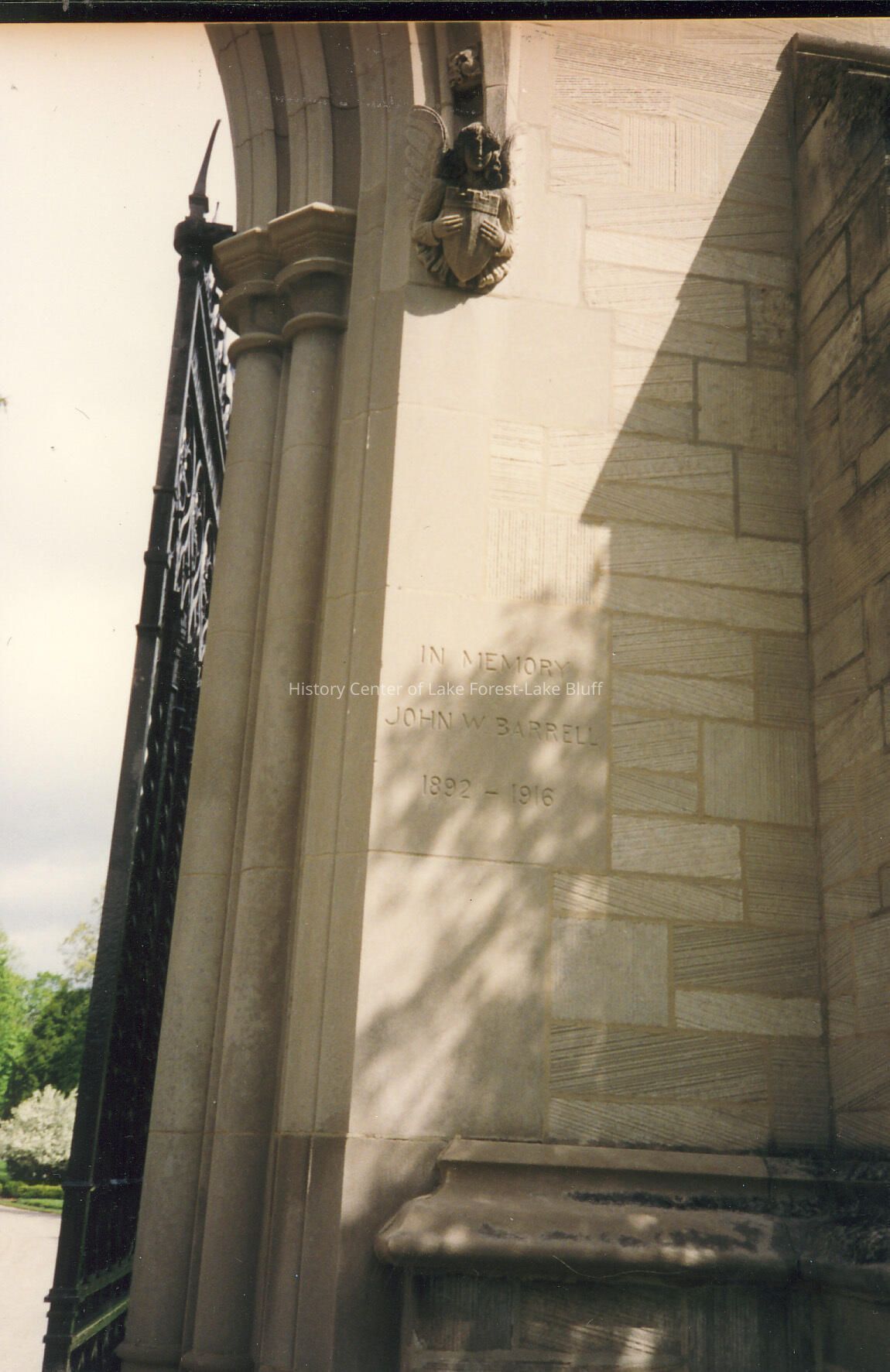 Lake Forest Cemetery entrance gates, given by Finley Barrell, in memory of his son, John