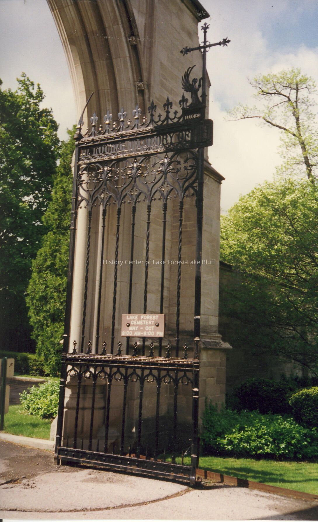 Lake Forest Cemetery entrance gates, given by Finley Barrell, in memory of his son, John