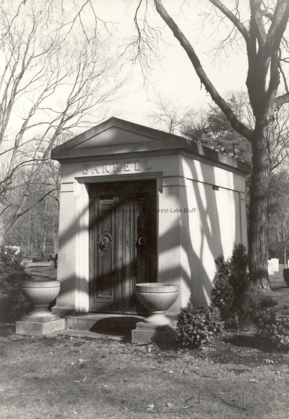 Gravestone in Lake Forest Cemetery. negatives included Barrell Mausoleum