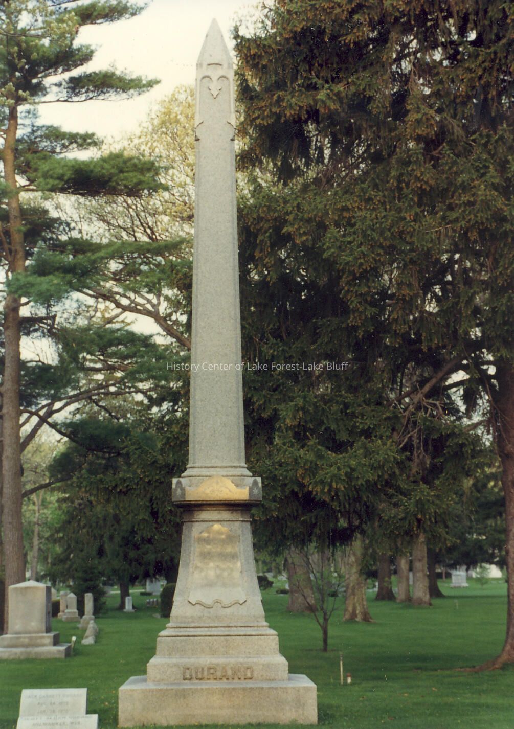 Gravestone in Lake Forest Cemetery. negatives included Durand Family