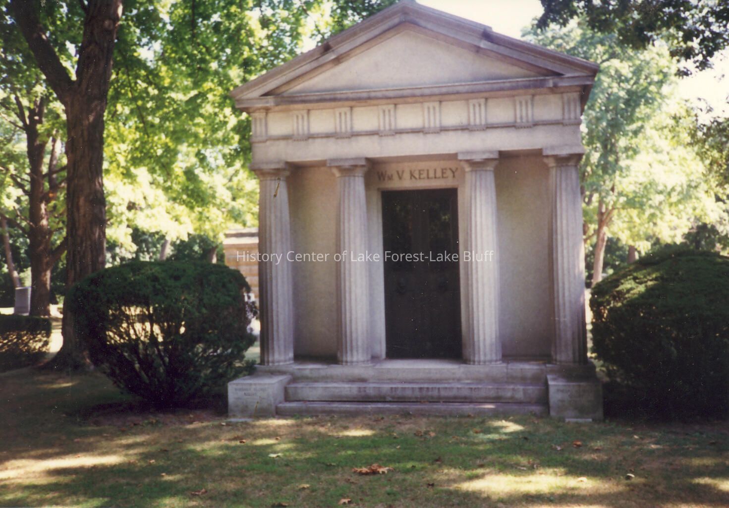 Gravestone in Lake Forest Cemetery. negatives included William V. Kelley Mausoleum