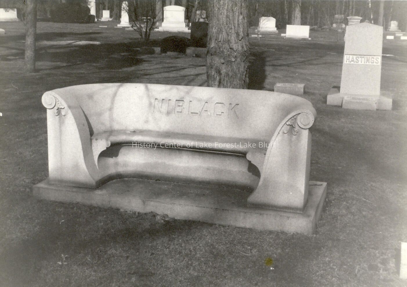 Gravestone in Lake Forest Cemetery. negatives included Niblack bench Hastings graves can also be seen