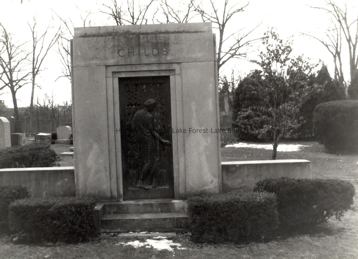 Gravestone in Lake Forest Cemetery. negatives included Childs mausoleum see also 2001.27.20