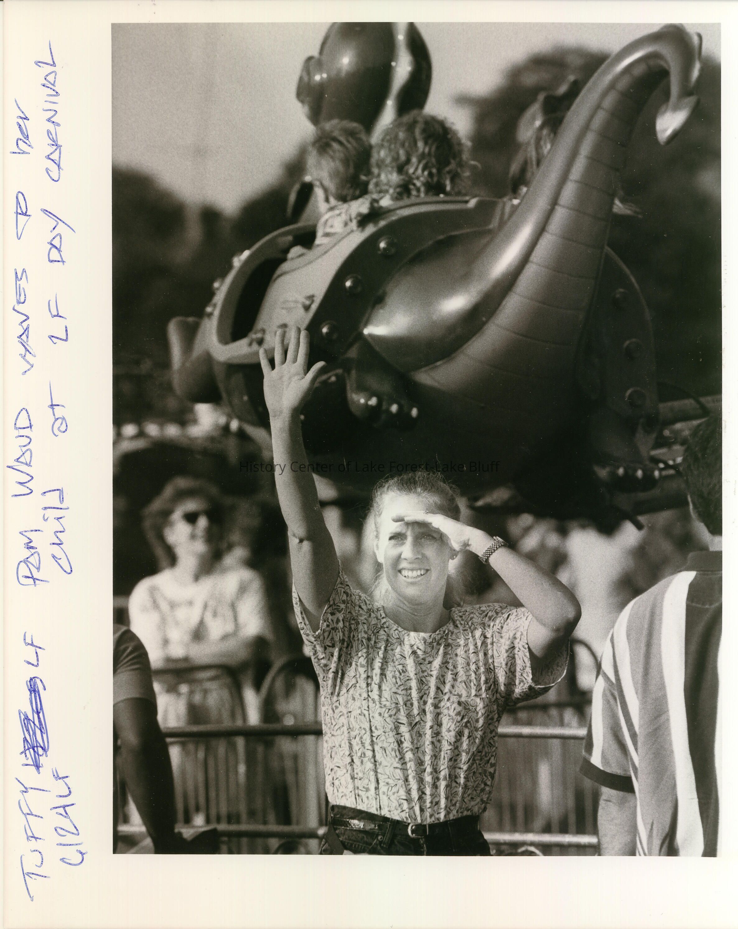 Pam Waud waves to her child at the Lake Forest Day Carnival