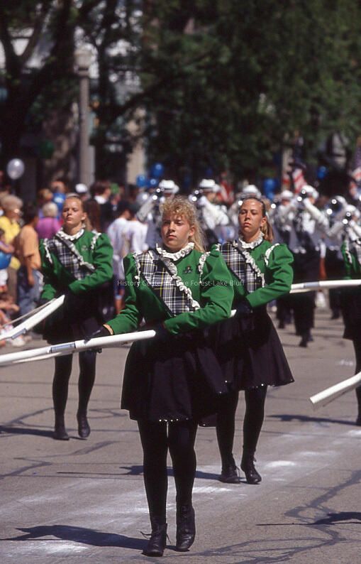 Gun twirlers march in the parade August 4, 1993