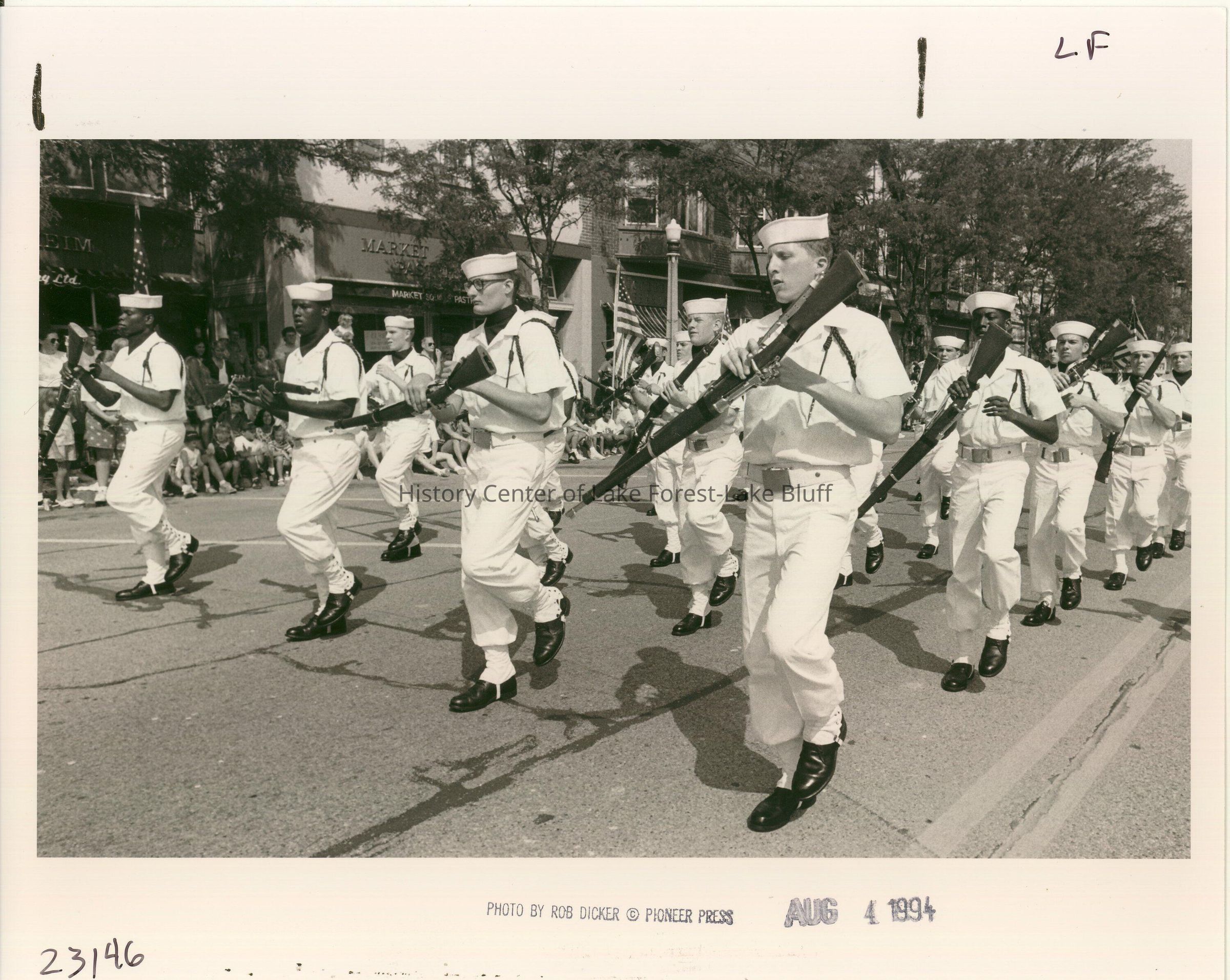 Navy Marching Band from Great Lakes, passing by Market Square Pastries. August 4, 1994.