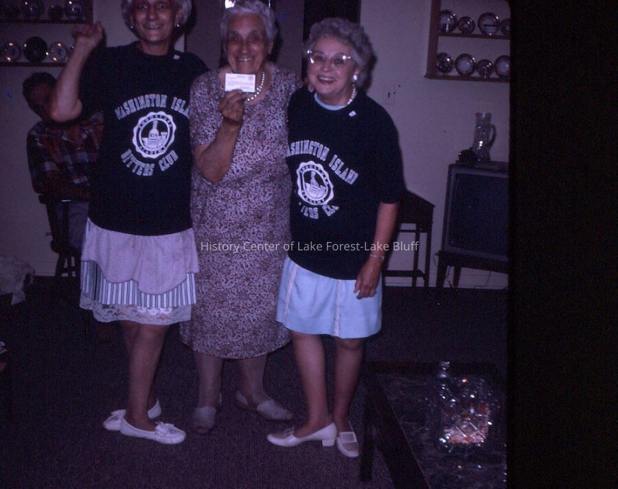 Lake Forest Day Parade, 1968. Color, slide. on the back it says, "Lily, Nana, Me. Washington Island. Bitters Club 'T' Shirts".