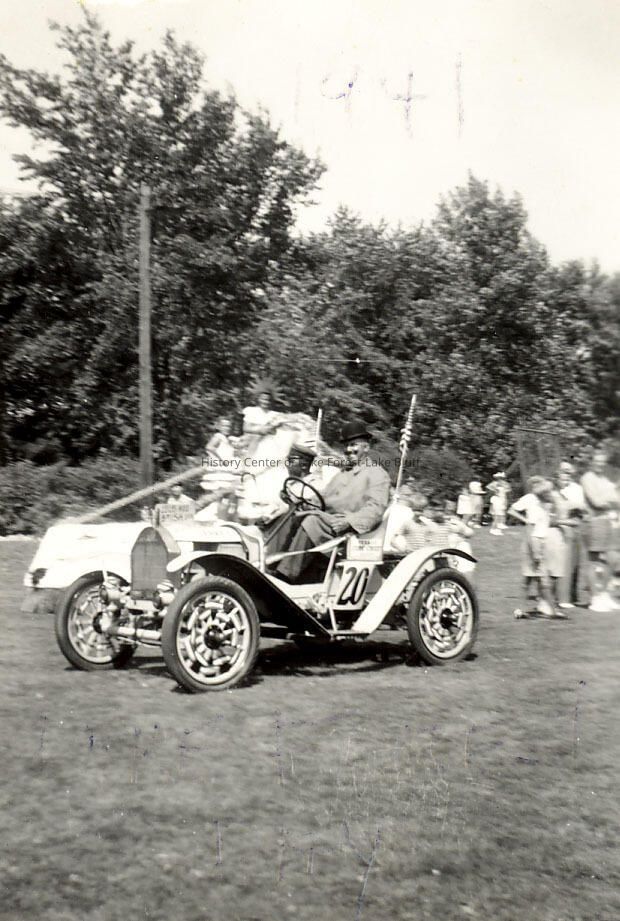 Lake Forest Day Parade 1941- vehicle with the number '20' on the side. Flag in rear.