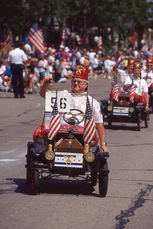 The shriners drive their go-karts in the parade