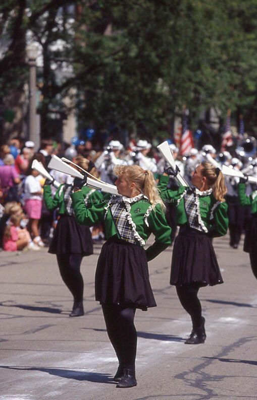 Flag twirlers march in the parade August 4, 1993
